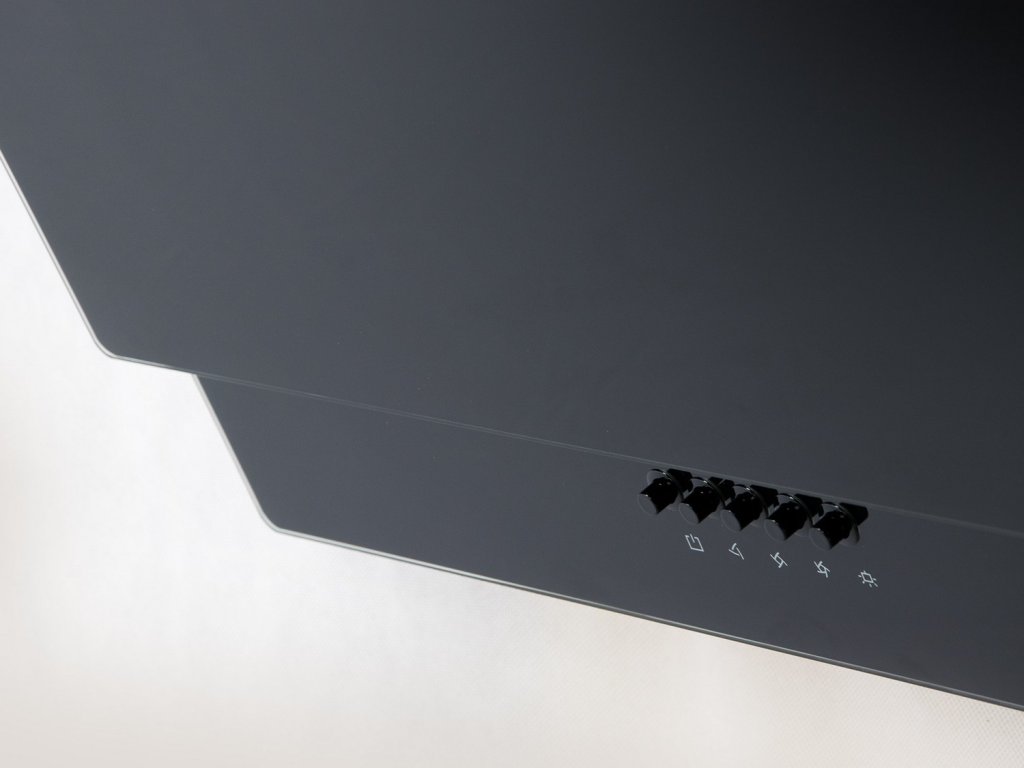 Combinația de forme neconvenționale cu culoarea neagră clasică înseamnă că hota se va integra în orice interior.
