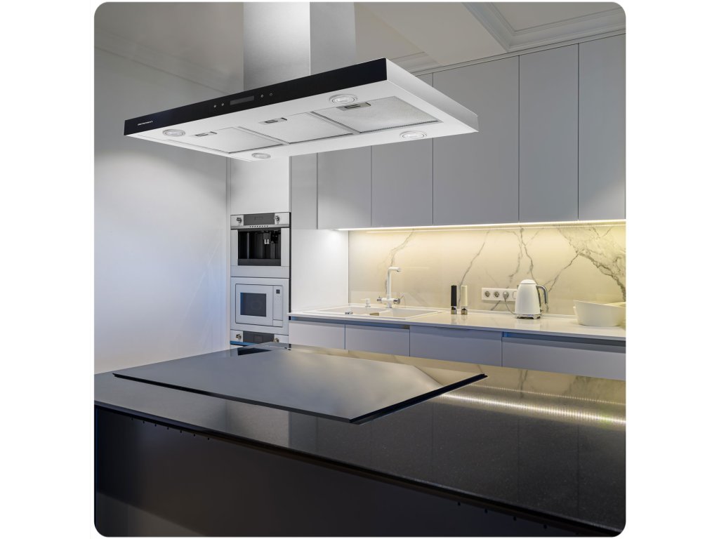 Berdsen BE-90E este o hotă insulară inovatoare cu o putere mare de 160W, oferind funcții practice, precum alegerea uneia dintre cele trei opțiuni de putere și unul dintre cele două moduri de funcționare: ca hotă sau ca recirculator.