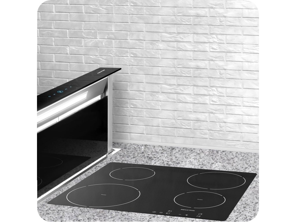 După apăsarea panoului tactil, capota se extinde în sus. În funcție de necesități și specificitatea bucătăriei, poate fi instalată în spate, între plita și perete, sau pe partea dreaptă sau stângă a aragazului, oferind libertate totală în aranjarea spațiului.