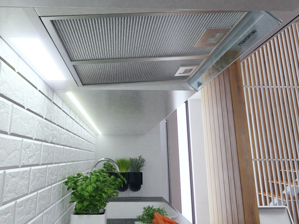 - Protecție împotriva murdăriei - hota ascunsă în dulap este mai puțin predispusă la praf și nu necesită curățare frecventă.