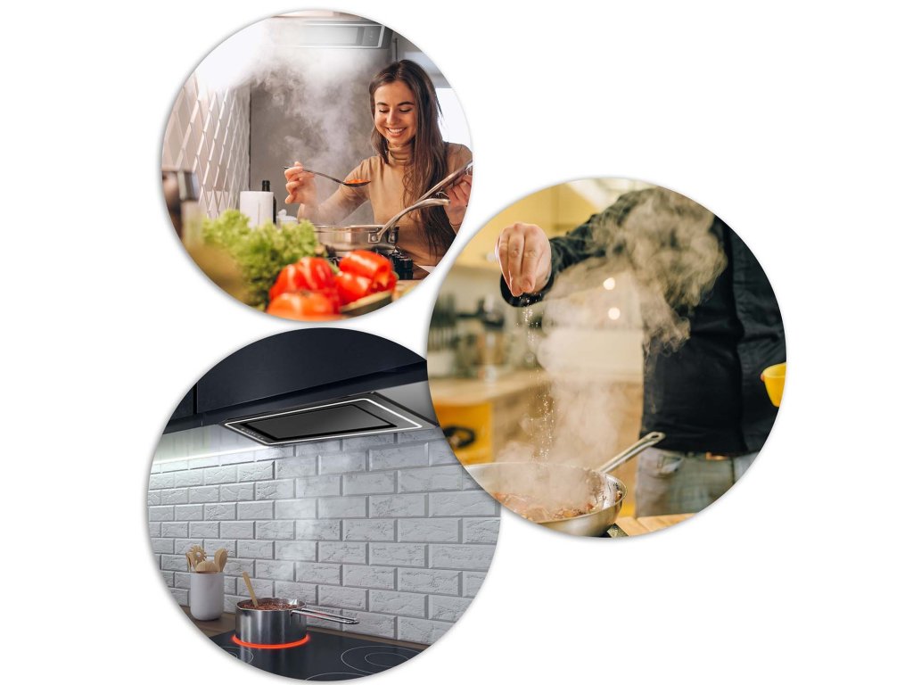 - elimină vaporii de grăsime (astfel încât grăsimea nu se depune pe plăci, fațadele dulapurilor și îmbinări, fără a crea un strat aderent de murdărie),