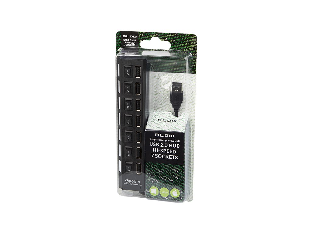 Hub USB pentru 7 porturi USB 2.0 permite conectarea a până la șapte dispozitive, cum ar fi hard disk-uri sau unități flash. Fiecare port are propriile sale comutatoare și LED-uri care indică funcționarea dispozitivului. Hub-ul se remarcă prin dimensiuni mici, design modern și viteză mare de operare.