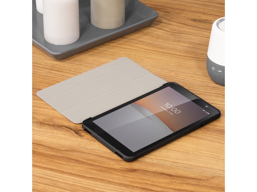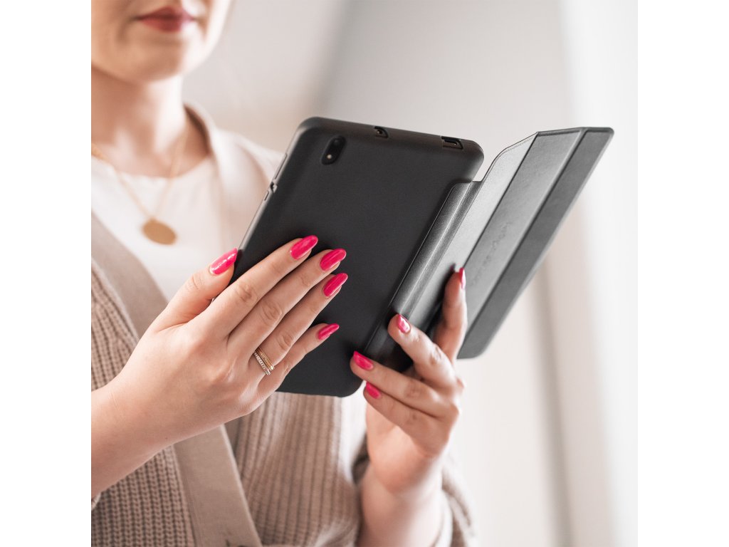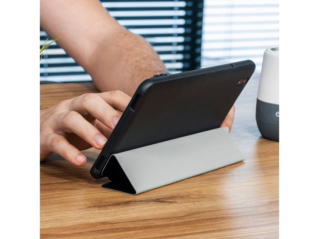 Un alt avantaj al husei este capacul său pliabil, care permite plasarea tabletei într-o poziție confortabilă pentru vizionarea de filme sau crearea de documente.