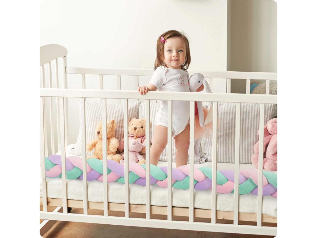 Împletitură pentru pătuț 3m - mentă roz și mov