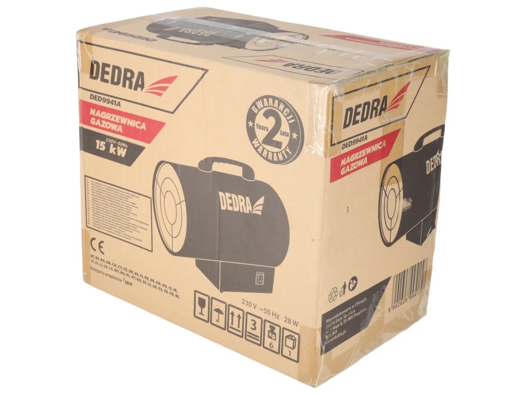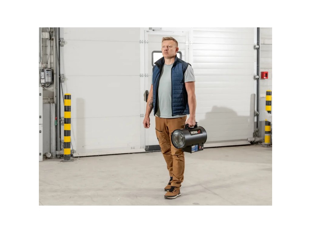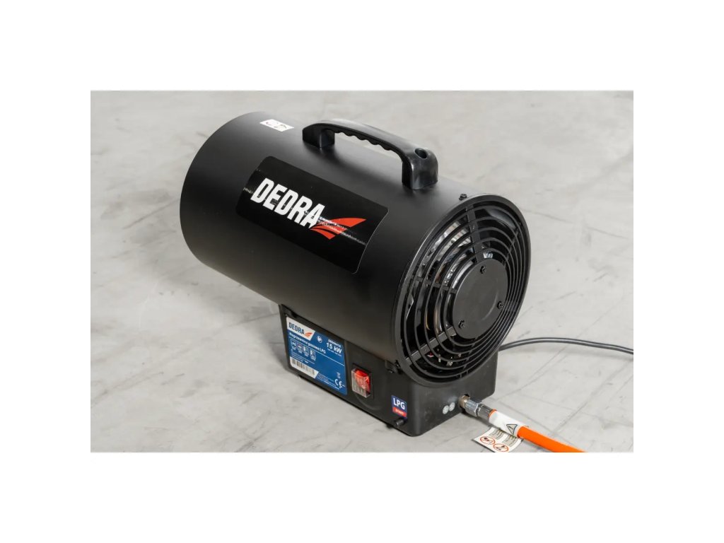 Încălzitorul pe gaz DED9941A este un dispozitiv destinat utilizării în spații închise. Se utilizează pentru încălzirea spațiilor non-rezidențiale, cum ar fi atelierele, depozitele, halele de producție, serele sau la reparații și lucrări de construcții. Încălzitorul este alimentat cu propan-butan (G30). Aparatul poate fi folosit doar în încăperi cu ventilație eficientă. Carcasa metalică nu se încălzește nici în timpul funcționării îndelungate. Carcasa metalică nulviseîncălzeșteniciînpdyscydetimp. În pachet este inclus un furtun educațional special. Datorită mânerului standard, este ușor de transportat și de mutat.Acest produs nu poate fi utilizat ca sursă principală de încălzire.