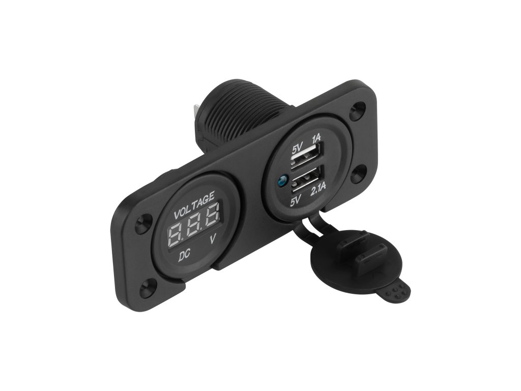 Încărcător auto 2xUSB 3100 mA cu voltmetru