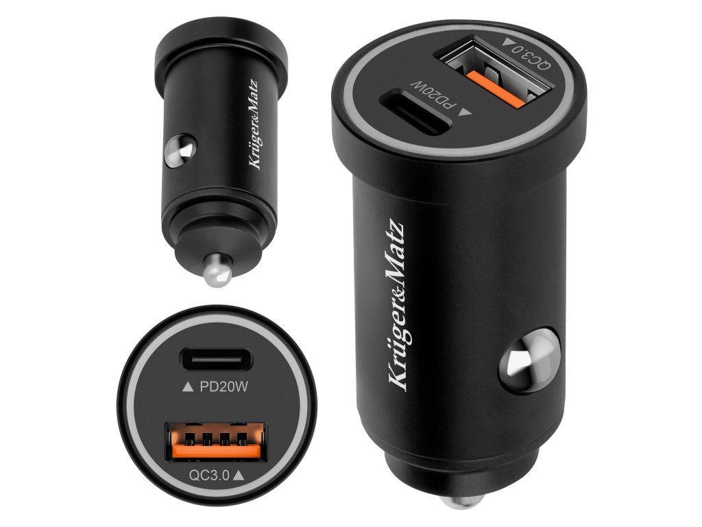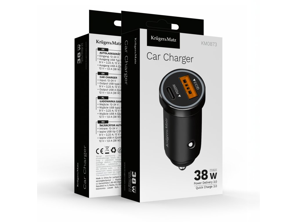 Încărcător auto 38W Kruger&Matz cu funcții Power Delivery și Quick Charge