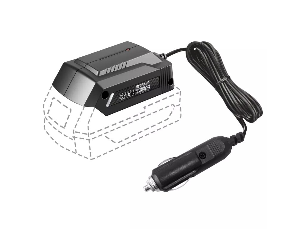 Acest produs este destinat încărcării bateriilor din seria SAS+ALL (DED7032, DED7034, DED7035, DED6936, DED6937). Acest încărcător auto completează deja gama extinsă de încărcătoare din seria SAS+ALL (DED7038, DED7039, DED7038V, DED7039V). Încărcătorul auto DED7038A încarcă o baterie de 2,0 Ah în 70 de minute, o baterie de 4,0 Ah în 140 de minute și o baterie de 5 Ah în 160 de minute. Încărcătorul DED7038A poate încărca bateria prin intermediul prizei de 12V, ceea ce este ideal pentru drumurile către și de la serviciu, astfel încât dispozitivul să fie pregătit pentru utilizare imediat după sosire. Încărcătorul este echipat cu un LED: acesta indică momentul când încărcătorul este conectat la alimentare și când procesul de încărcare a bateriei este finalizat.