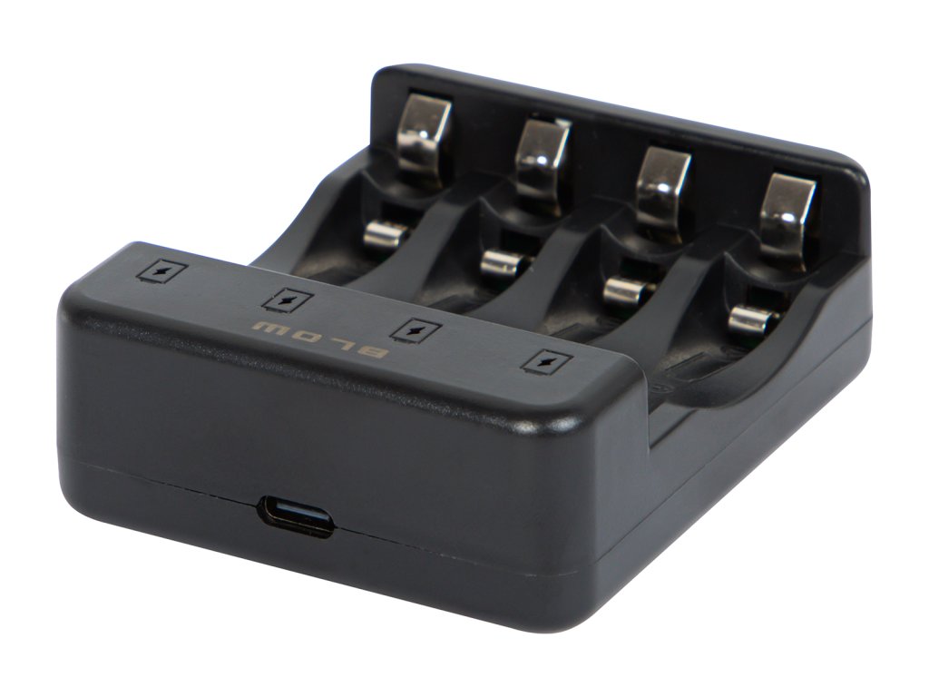 Un încărcător USB RC4B funcțional și compact, care permite încărcarea rapidă a 1–4 acumulatori Ni-MH/Ni-Cd. Indicatorul LED informează despre finalizarea procesului de încărcare prin schimbarea culorii în verde.