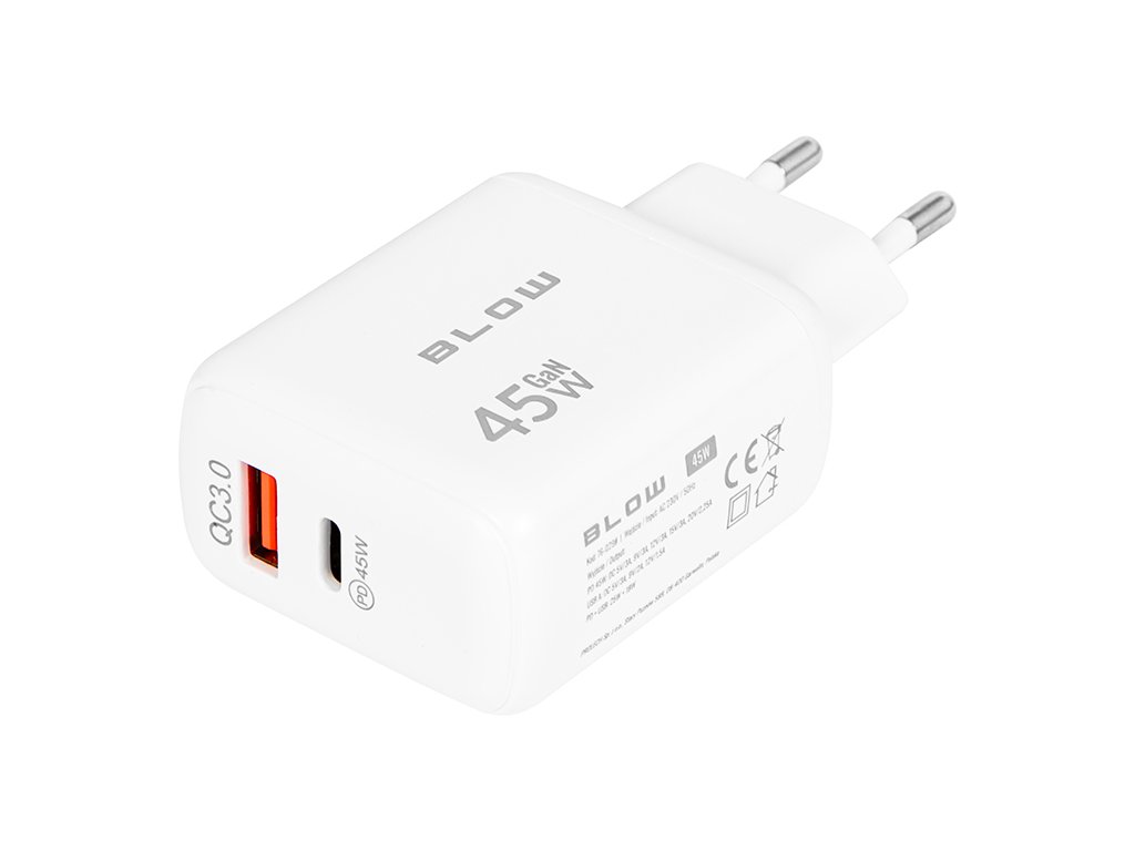 Încărcător de rețea priză USB + USB-C PD 45W GAN