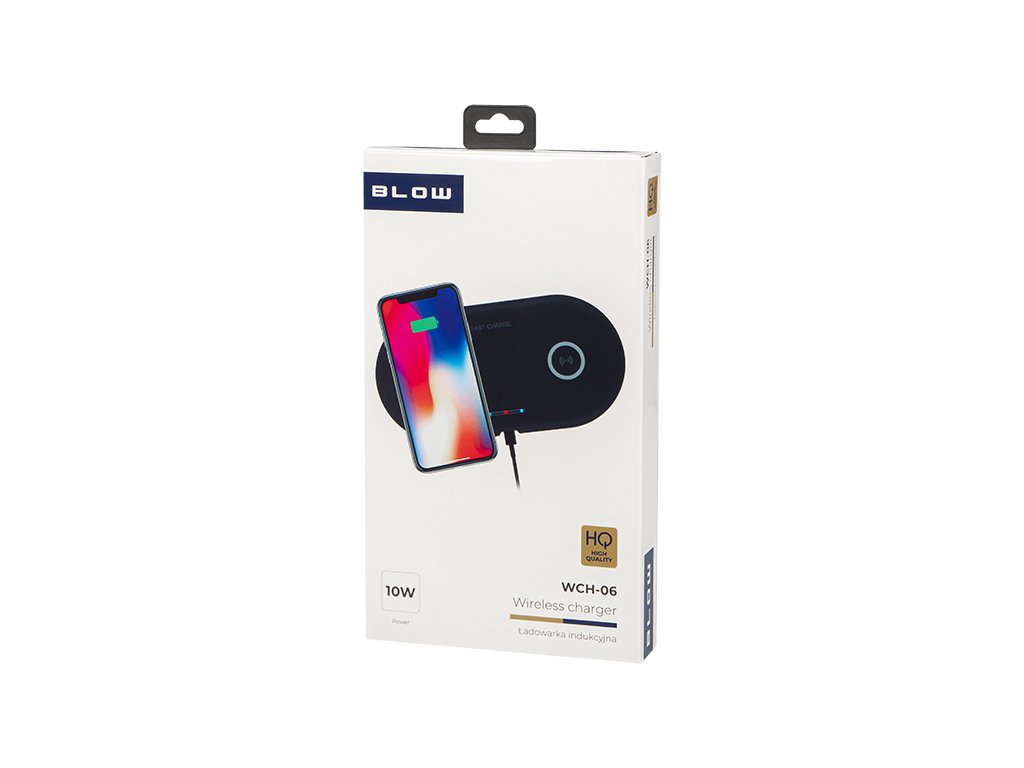 Specificație:Material: ABSDimensiuni: 204x105x10mmGreutate: 120gTensiune de intrare: 5V/2A, 9V/1,3APutere de încărcare: 10WDistanță de lucru: <5mmEficiență de încărcare: 70%-76% Încărcător inductiv fără fir cu cea mai recentă tehnologie QI de la BLOW vă permite să scăpați de cablurile inutile. Produsul permite încărcarea fără fir pentru până la 2 telefoane simultan - ideal pentru casă sau birou.Încărcare fără fir și rapidăMetoda de încărcare inductivă este o soluție modernă pentru reîncărcarea rapidă a telefonului nostru. Pur și simplu conectați încărcătorul la sursa de alimentare folosind cablul USB inclus și apoi așezați telefonul pe panoul încărcătorului - de acum puteți beneficia de încărcarea rapidă.