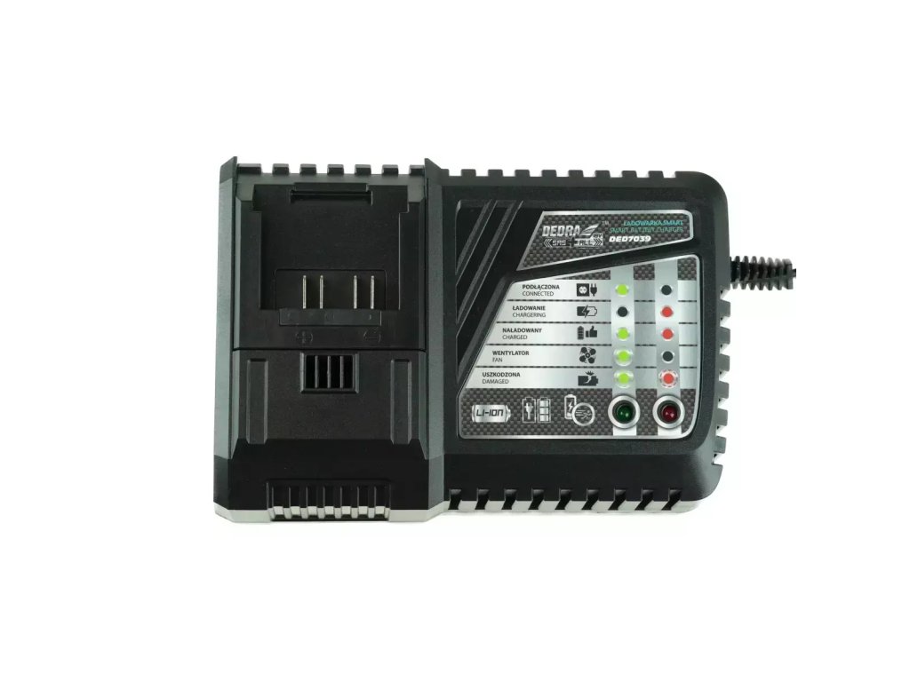 Acest produs este destinat încărcării bateriilor din gama SAS+ALL (DED7032, DED7034, DED7035, DED6936, DED6937). O baterie cu capacitatea de 2,0 Ah se încarcă în 30 de minute, iar una cu capacitatea de 4,0 Ah în 1 oră. Cea mai puternică baterie de 5 Ah poate fi încărcată în doar 1 oră și 10 minute. Încărcătorul este dotat cu un ventilator care răcește bateria în timpul încărcării și o protejează împotriva supraîncălzirii. În plus, încărcătorul are un sistem informativ L ED al bateriei și o funcție de diagnosticare.