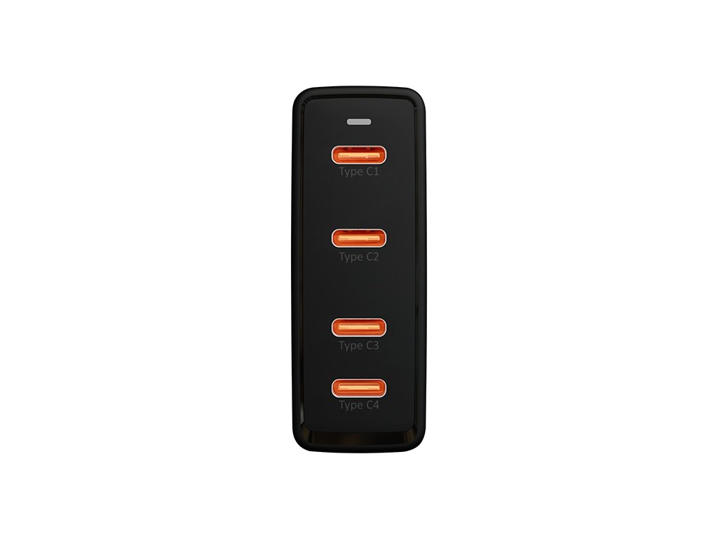 Cele patru porturi simetrice USB-C permit încărcarea a până la patru dispozitive simultan. În plus, gestionarea inteligentă a puterii asigură că fiecare dintre ele primește tensiunea și curentul optim. Configurații precum C1+C2 (65W+30W) sau C2+C3+C4 (5V/3A) permit utilizarea flexibilă a încărcătorului – de la laptopuri la ceasuri inteligente.