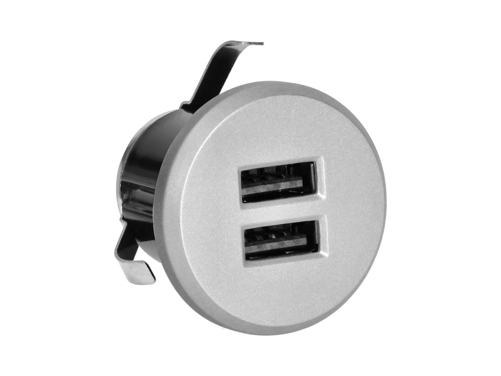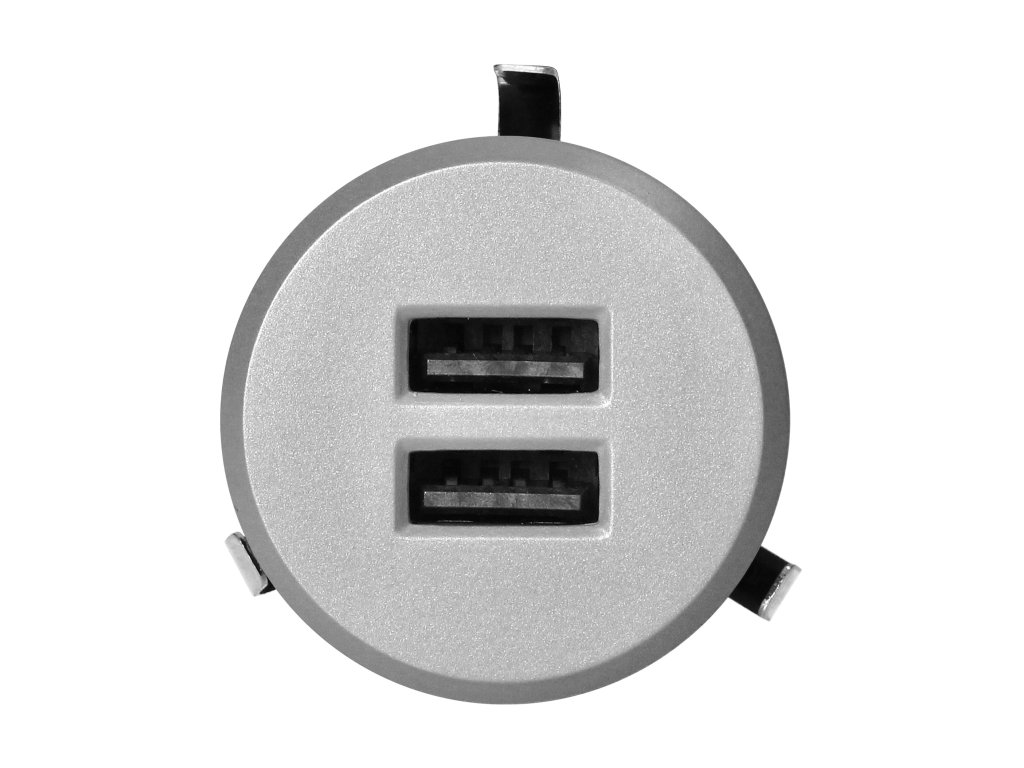 Încărcător USB încastrat 2x 3,4A argintiu