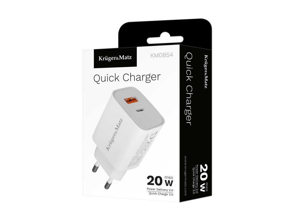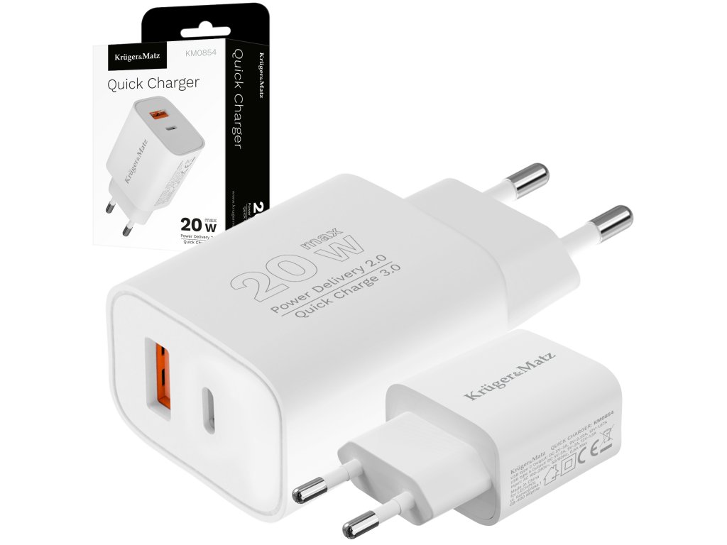 Dacă vă întrebați care încărcător USB va încărca smartphone-ul dumneavoastră, cu siguranță va fi modelul KM0854. Dispozitivul funcționează cu o putere maximă de 20 W și este echipat cu funcții de încărcare rapidă Power Delivery 2.0 și Quick Charge 3.0, care îmbunătățesc eficiența încărcării.