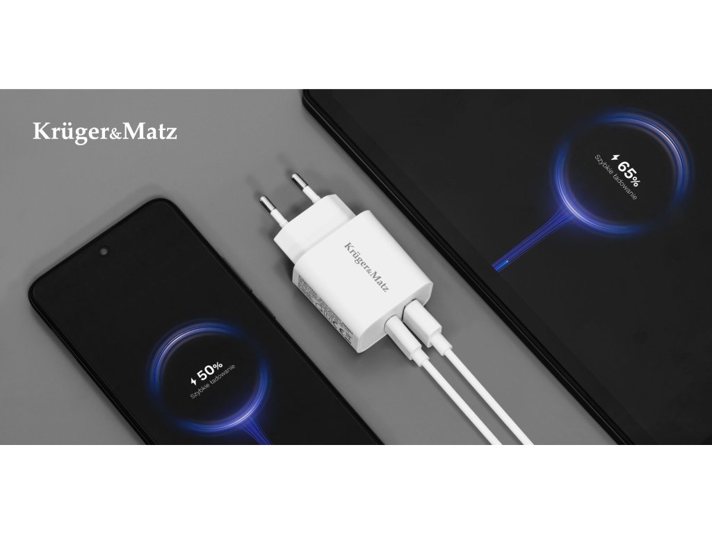 Încărcător USB Kruger&Matz GaN cu funcție Power Delivery și Quick Charge