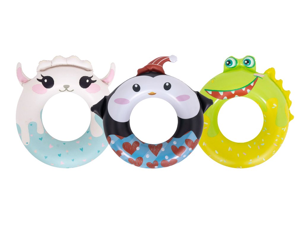Este mai mult decât un simplu inel! SUNCLUB oferă trei variante amuzante: o alpaca alb-albastră cu urechi, un crocodil galben și un pinguin cu aripi. Fiecare model are propria formă unică, care place copiilor și îi încurajează să se joace. Inelul devine un prieten în apă – adorabil, colorat și pregătit pentru aventuri de vară.