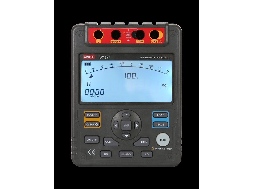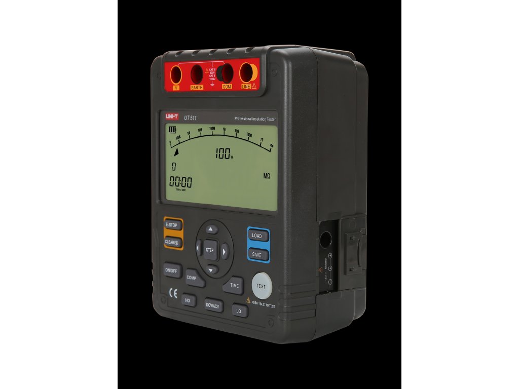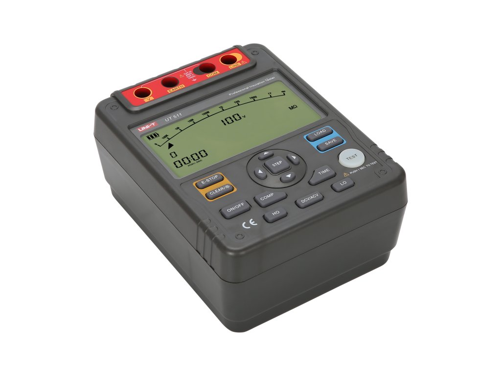 Măsurător de rezistență a izolației UNI-T UT511 este un aparat de măsurare digital destinat electroniștilor și electricienilor. Permite măsurarea rezistențelor mari de până la 10 GOhm la o tensiune de testare de 1000 V. În plus, permite măsurarea tensiunii alternate și continue și a rezistențelor mici. Dintre numeroasele alte funcții, merită menționat testul de absorbție dielectrică, indexarea polarizării sau funcția de comparare. Acest model respectă standardul IECG1010.