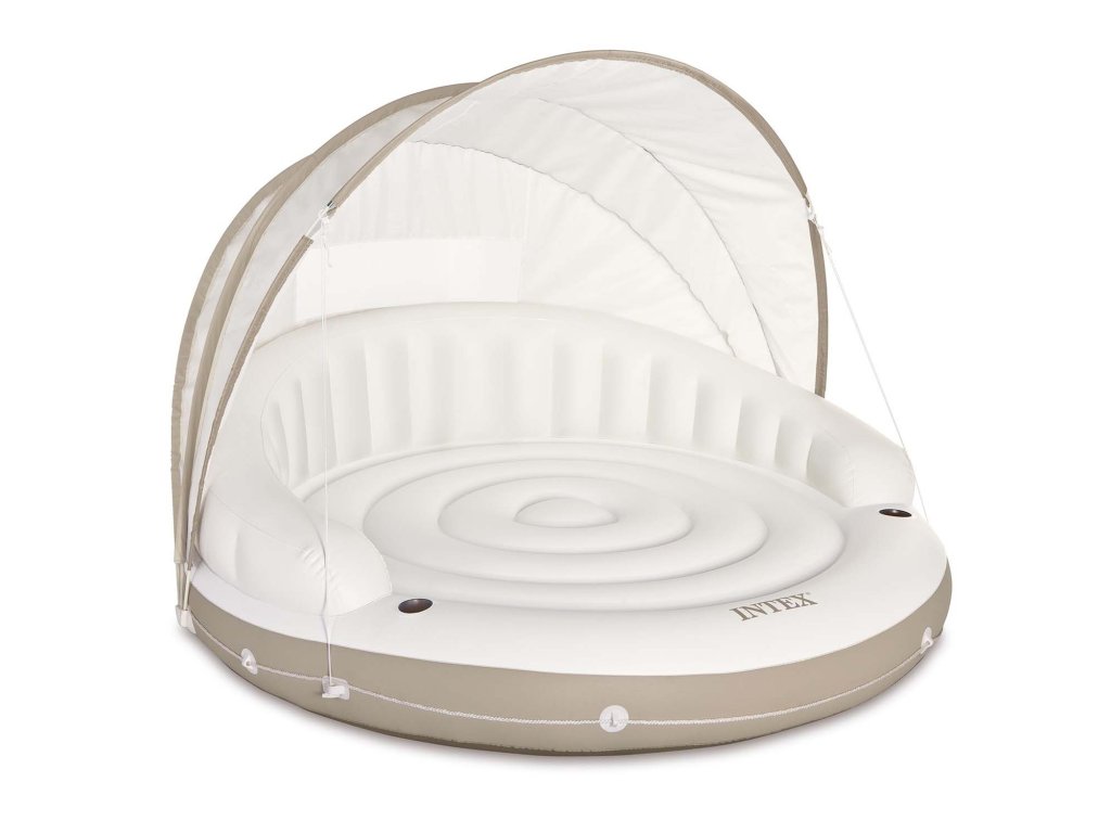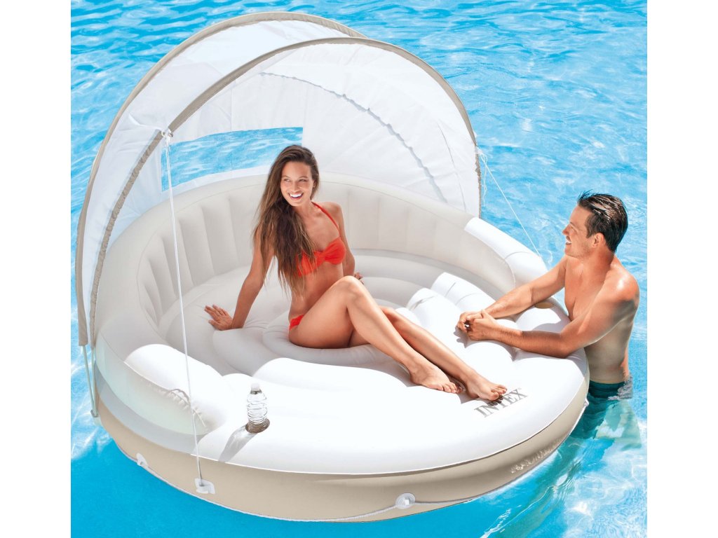 Acest produs poate servi ca adăpost împotriva soarelui sau loc confortabil pentru bronzat, deoarece acoperișul atașat de insulă poate fi oricând deviat sau îndepărtat.