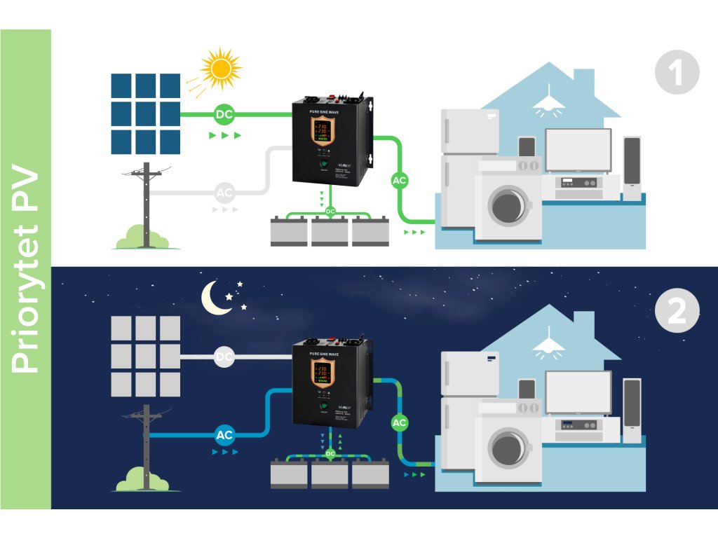 Mod de operare: PV (PV / prioritate fotovoltaică) /AC (AC / prioritate rețea)