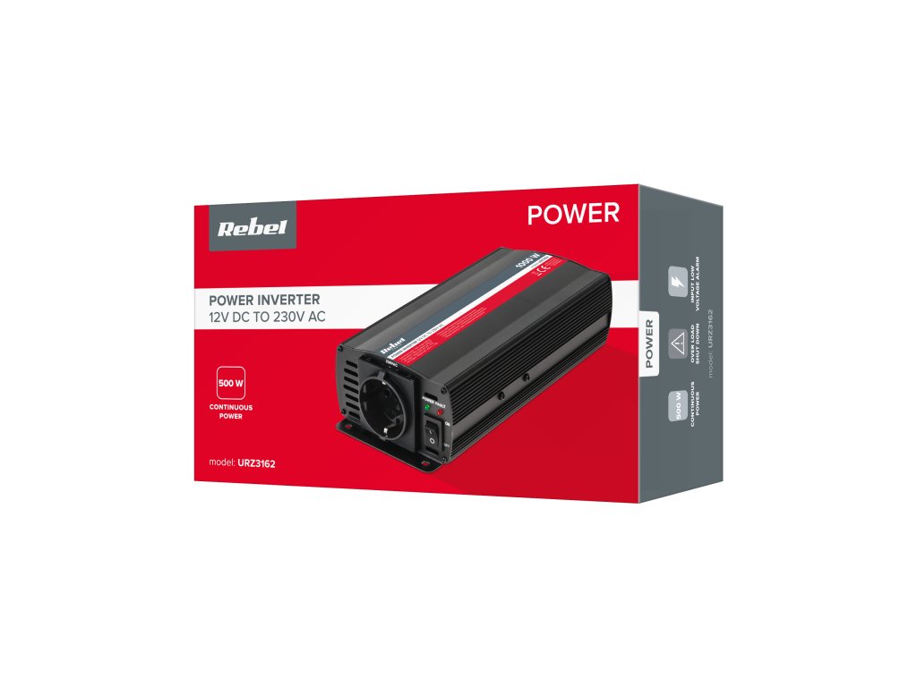 Invertor de tensiune pentru automobil 12 V DC/230 V ACPutere de ieșire: 500 W