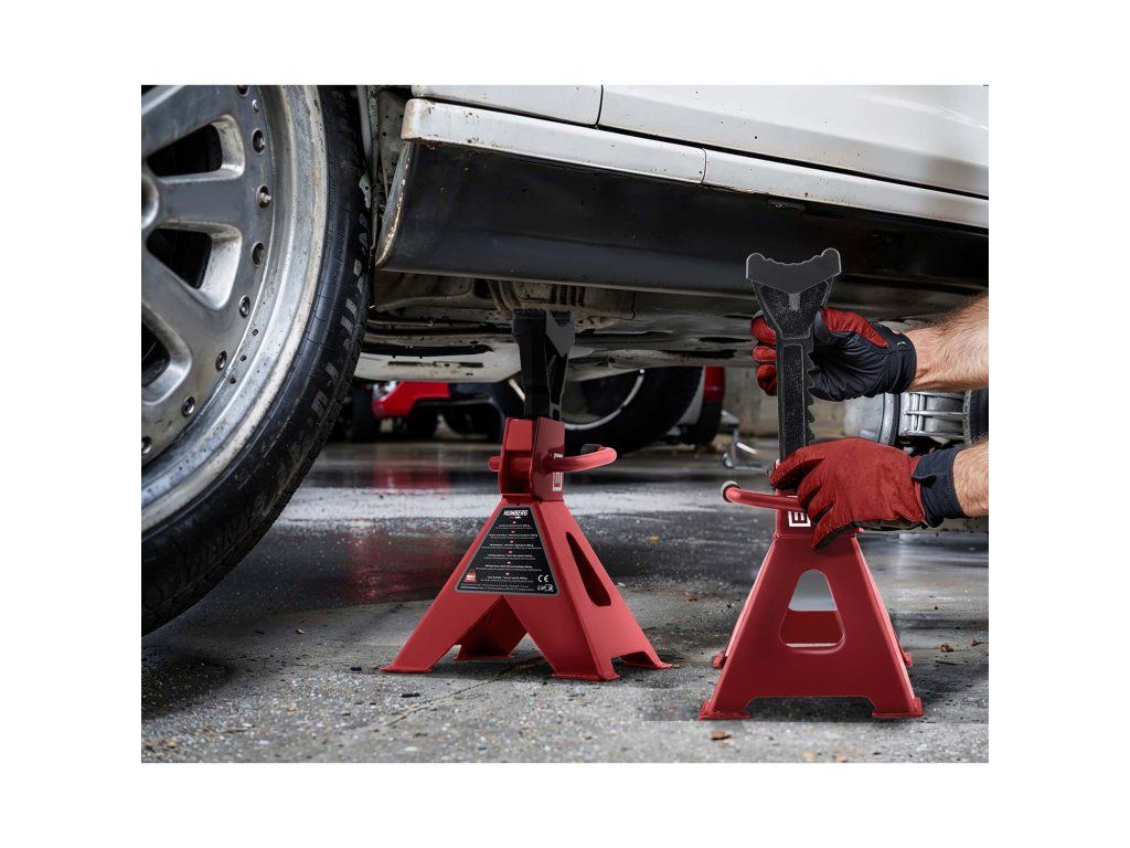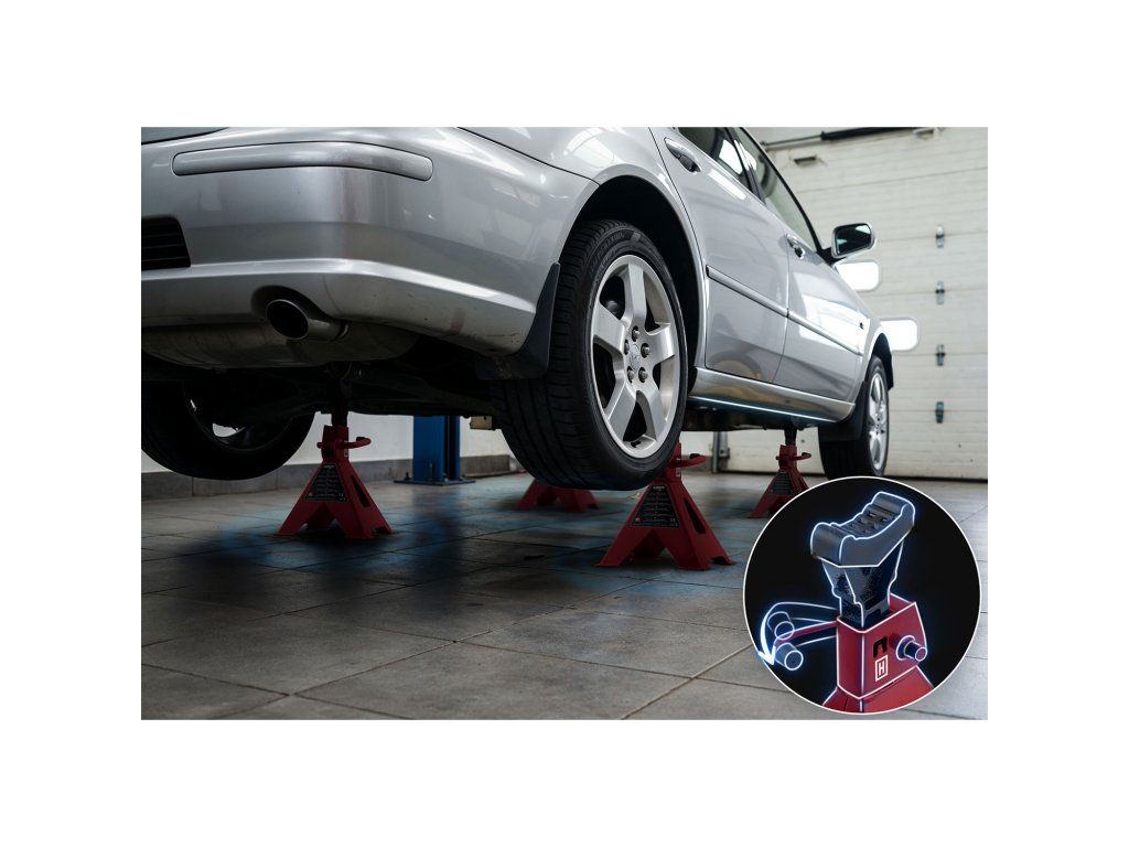 Rezistente, durabile și fiabile – suporturi care rămân cu tine pentru mult timp!Construcție din oțel rezistentă la utilizare intensă – suporturile au fost proiectate cu gândul la munca zilnică în garaj și atelier. Materialele durabile garantează o durată lungă de viață, fără pierderi de stabilitate.