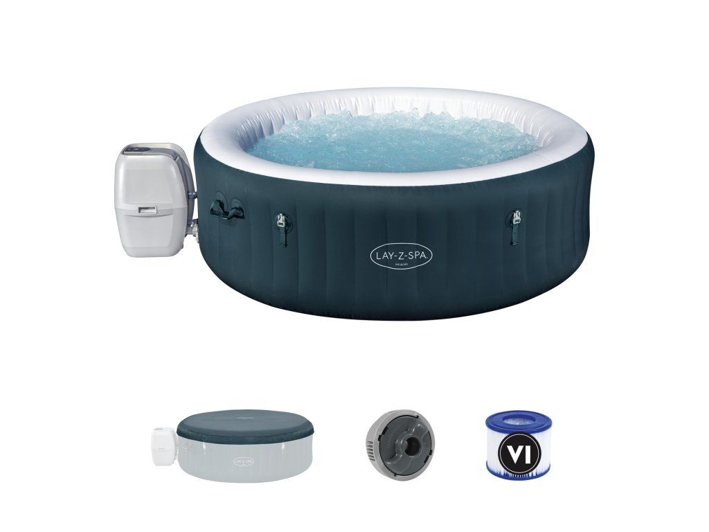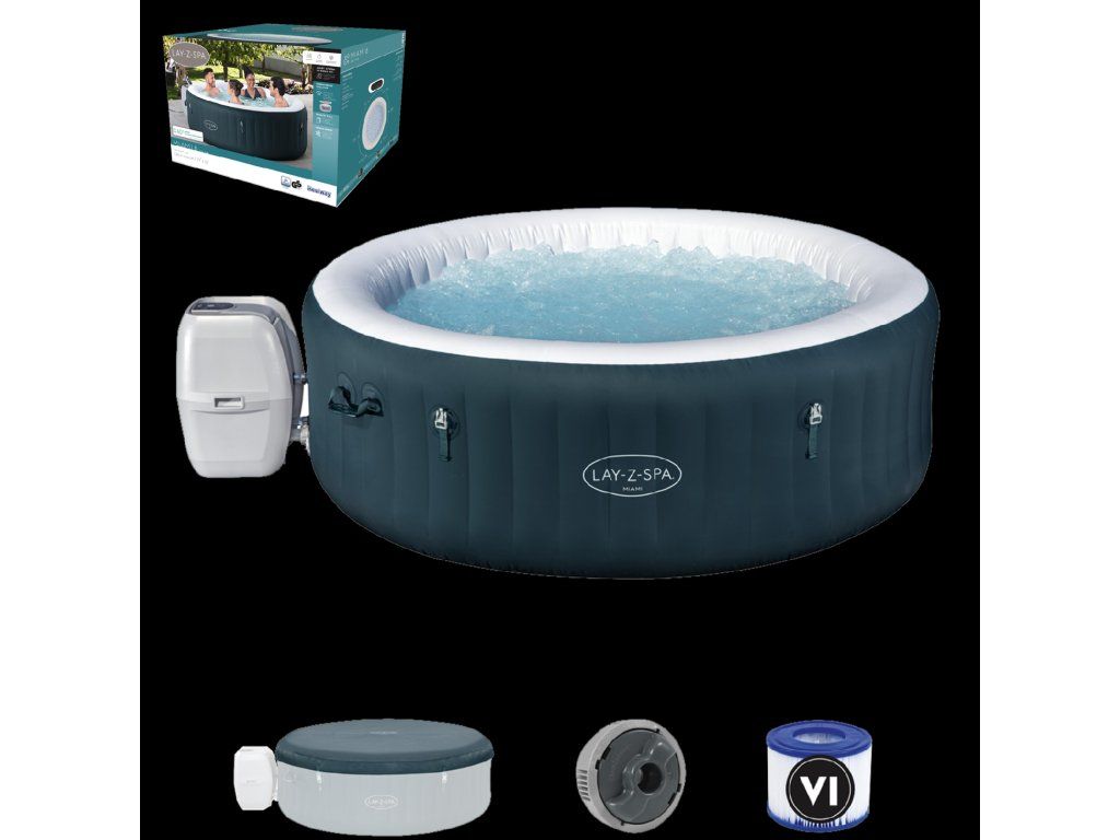 Jacuzzi Lay-Z-Spa Miami AirJet este o alegere confortabilă pentru 4-6 adulți, care oferă o relaxare excepțională datorită tehnologiei AirJet™. Dimensiunile după umflare sunt 1,96 m x 66 cm, iar dimensiunea interioară este 1,48 m. Datorită sistemului de încălzire cu o temperatură maximă de încălzire de 40 , jacuzzi-ul oferă condiții ideale pentru relaxare. Pereții izolați și capacul EnergySense® fac ca acest model să fie unul dintre cele mai energetice economice de pe piață.