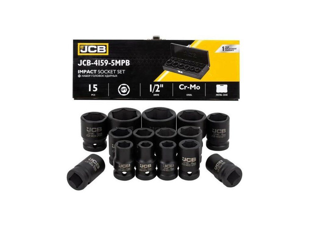 JCB Set de capete de impact 1/2" Cr-Mo 6 fațete 15 bucăți 10-32mm
