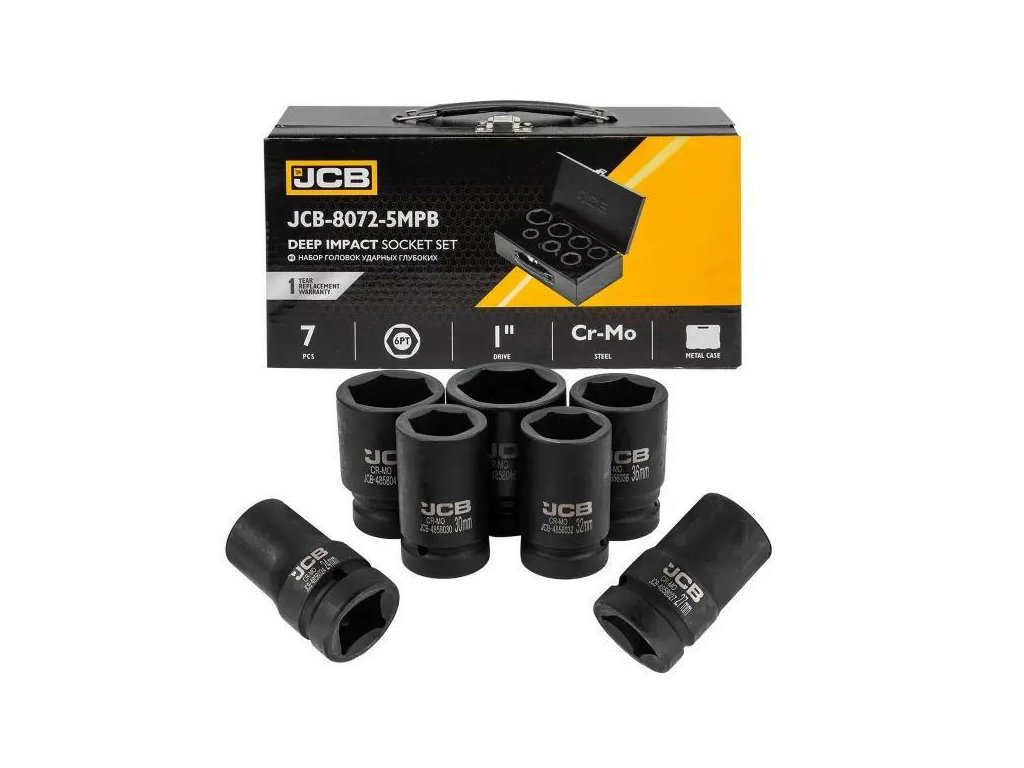 JCB Set de capete de impact adânci 1" Cr-Mo 6-ungulate 7 bucăți 24-46