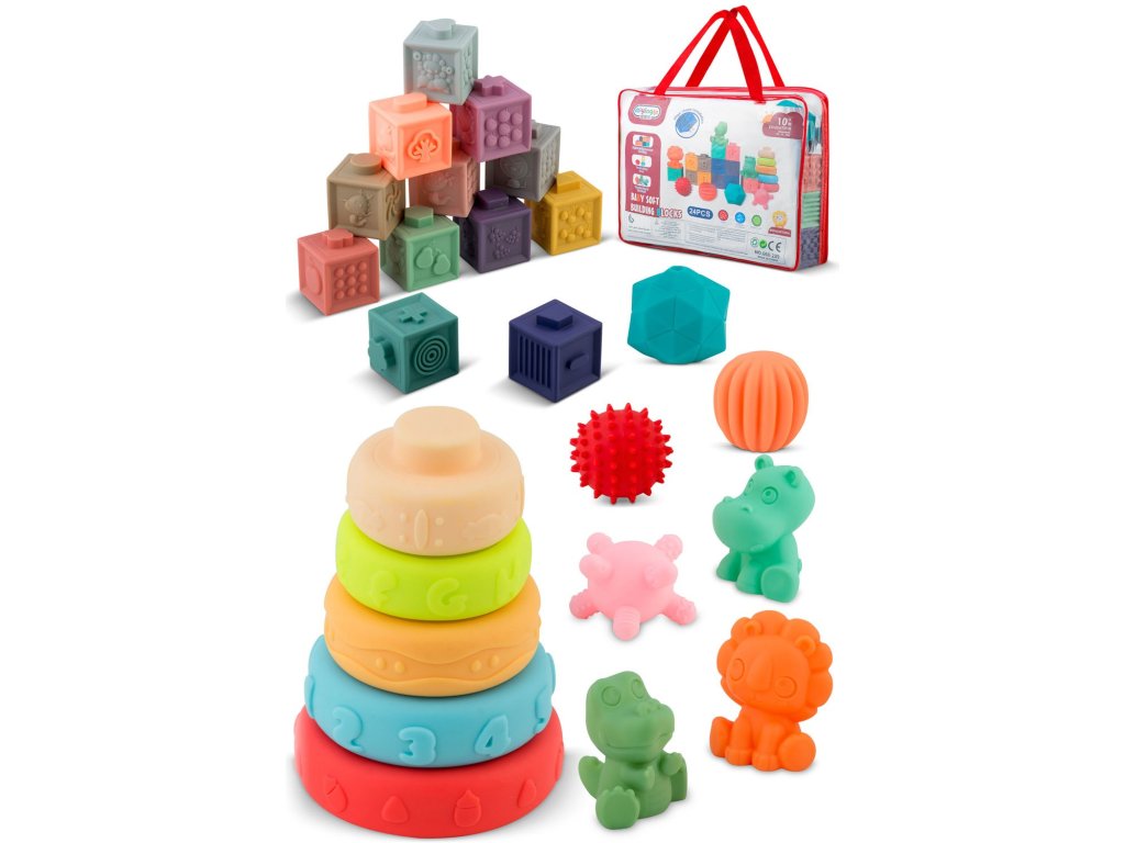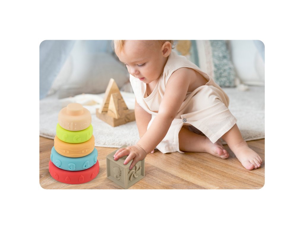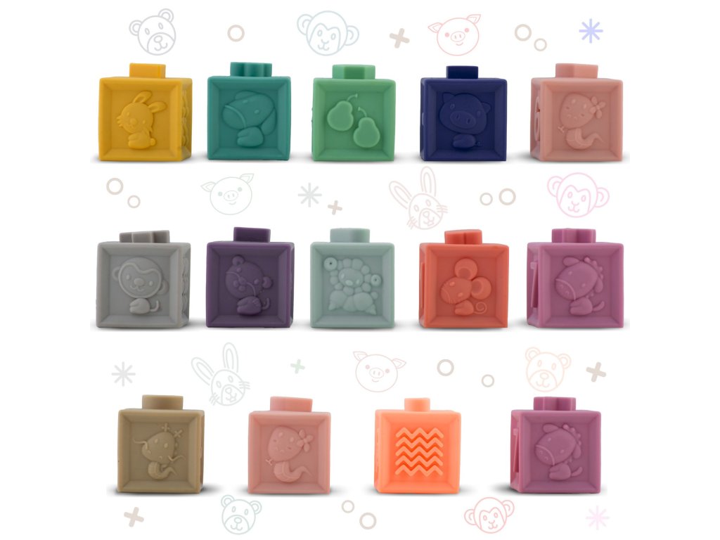 Construcția cuburilor și a animalelor este concepută astfel încât copilul să poată prinde jucăria într-un mod confortabil și intuitiv.Învățarea culorilor și formelor