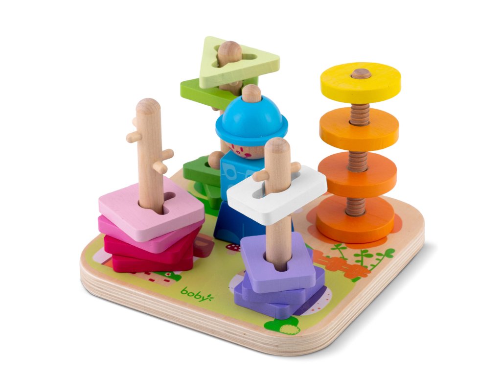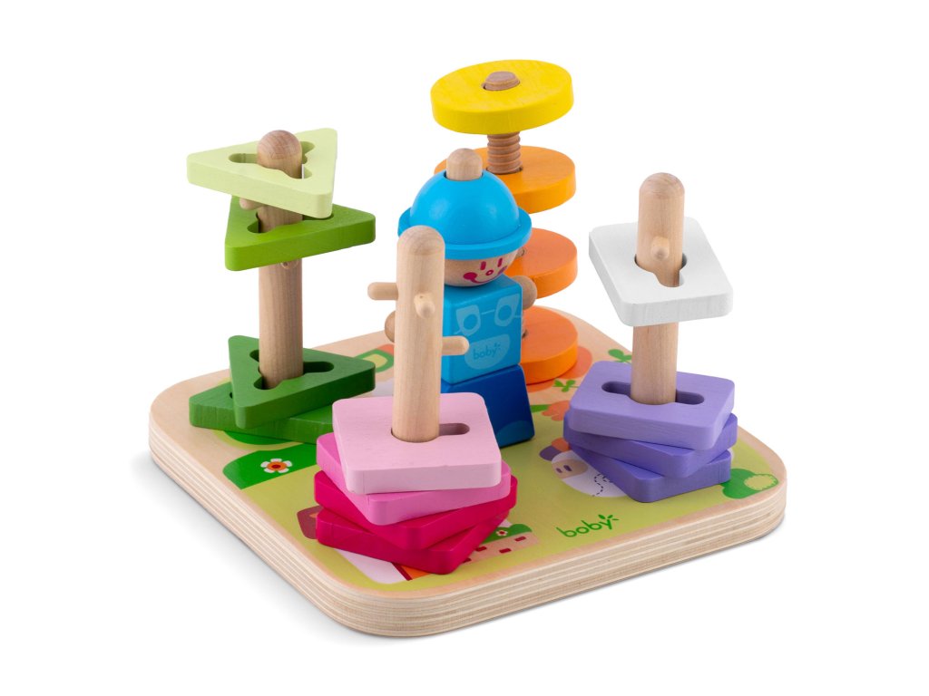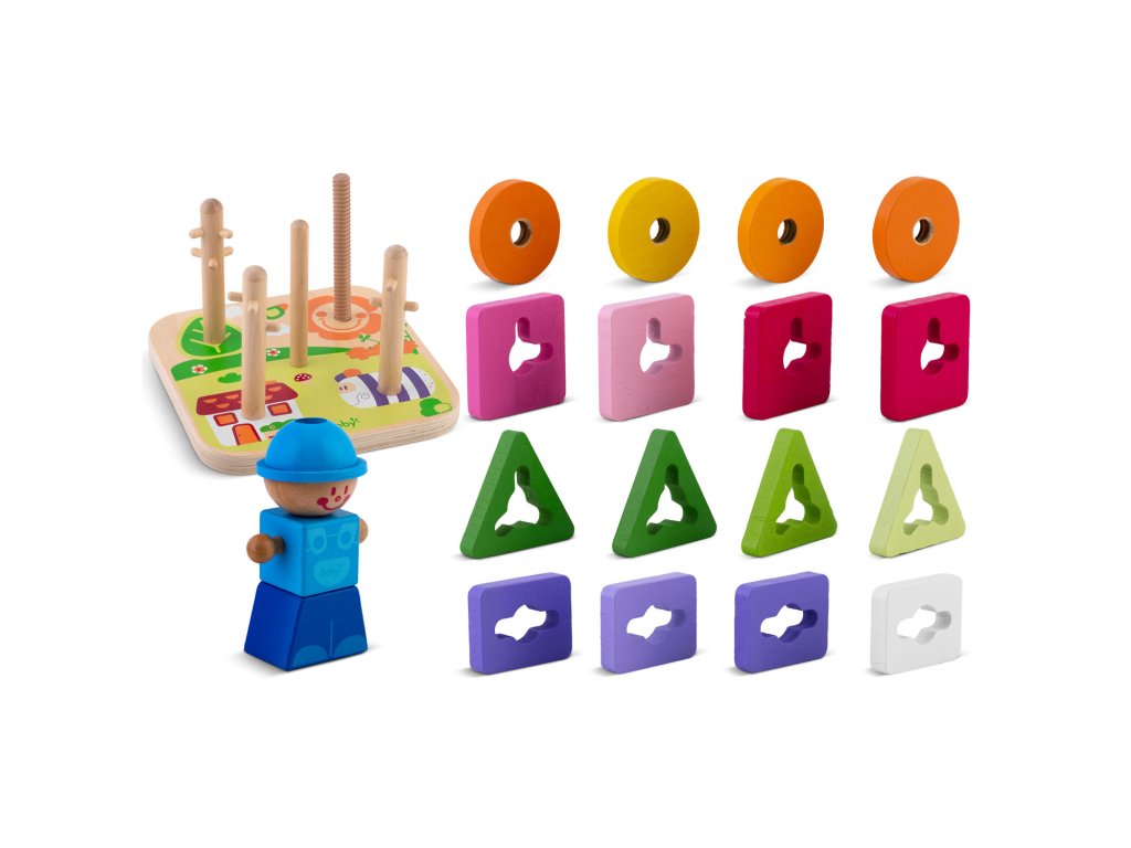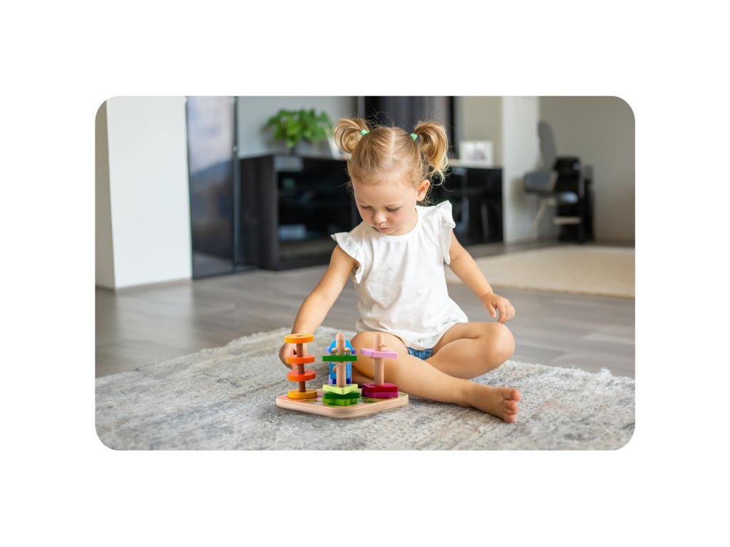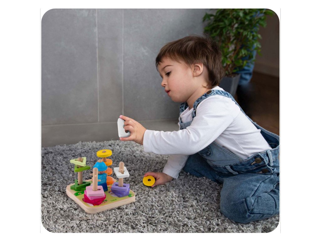 Culorile intense stimulează vederea copilului, facilitează învățarea culorilor și susțin dezvoltarea percepției vizuale. În plus, culorile sigure utilizate și lemnul durabil garantează că jucăria este sigură chiar și pentru cei mai mici utilizatori și va servi mulți ani.