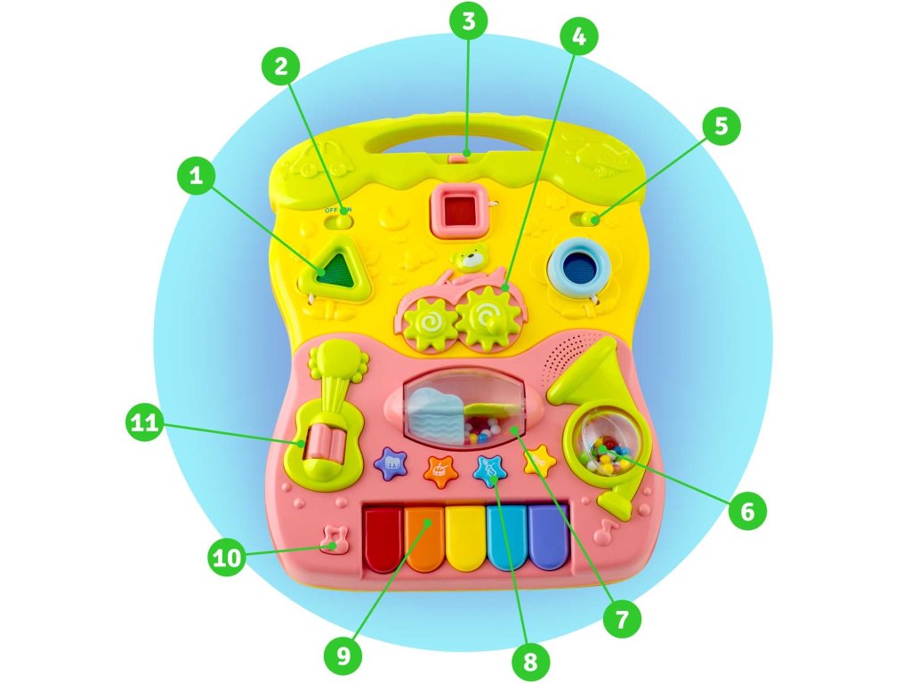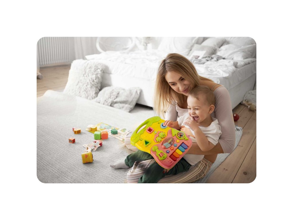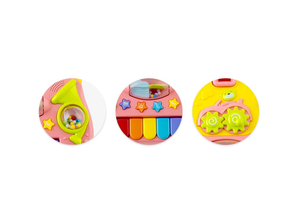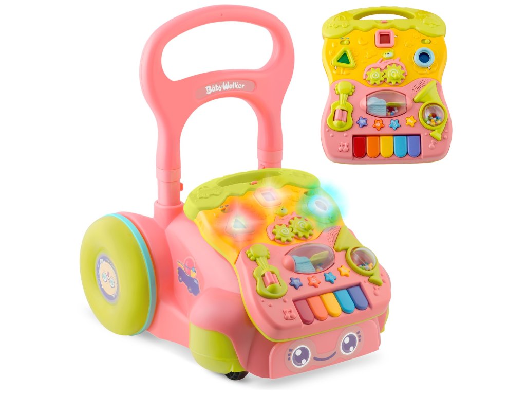 În plus față de învățarea mersului produsul este ideal pentru învățarea culorilor și formelor . Panoul detașabil (pentru a îndepărta panoul, apăsați butonul situat în partea de jos a structurii pentru a elibera clema) poate fi utilizat ca tablă educațională.