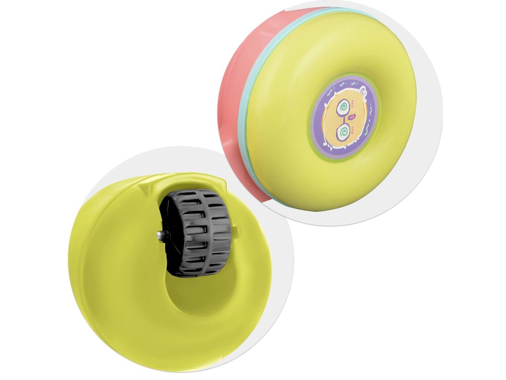 Roțile cu blocare de încetinire și cauciuc antiderapant asigură siguranță copilului și nu zgârie podeaua.