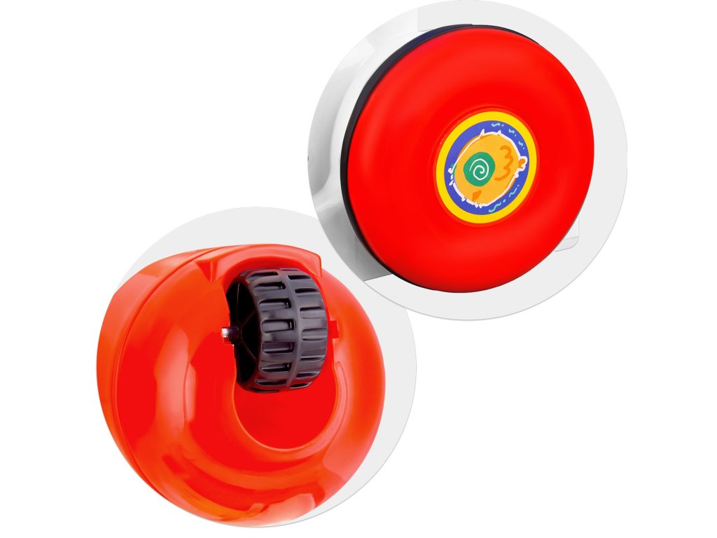 Roțile cu blocare de încetinire și cauciuc antiderapant asigură siguranța copilului și nu zgârie podeaua.