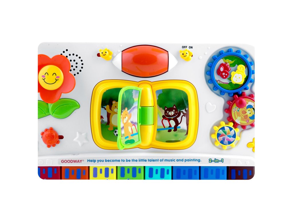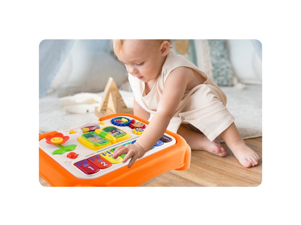 Scoateți panoul educațional și turnați nisip în el sau folosiți-l ca loc pentru joc creativ cu plastic și masă modelatoare.