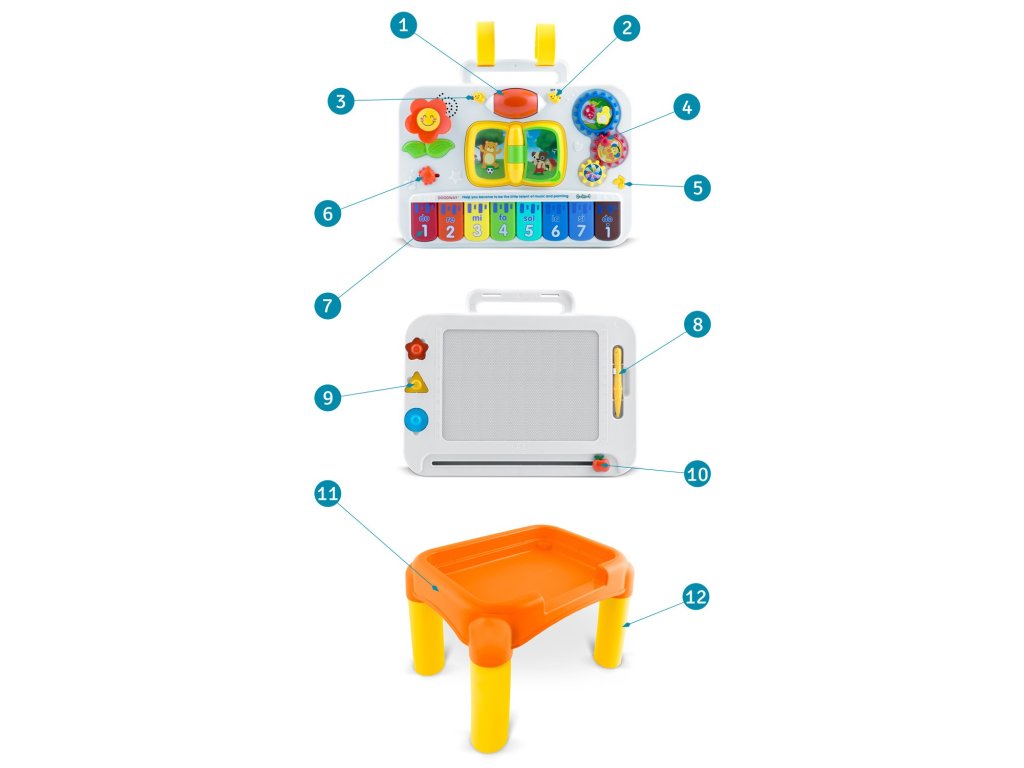Produsul este ideal pentru învățarea numelor animalelor și culorilor . Panoul poate fi folosit ca tablă educațională și, prin adăugarea picioarelor, se transformă rapid într-o masă educațională.
