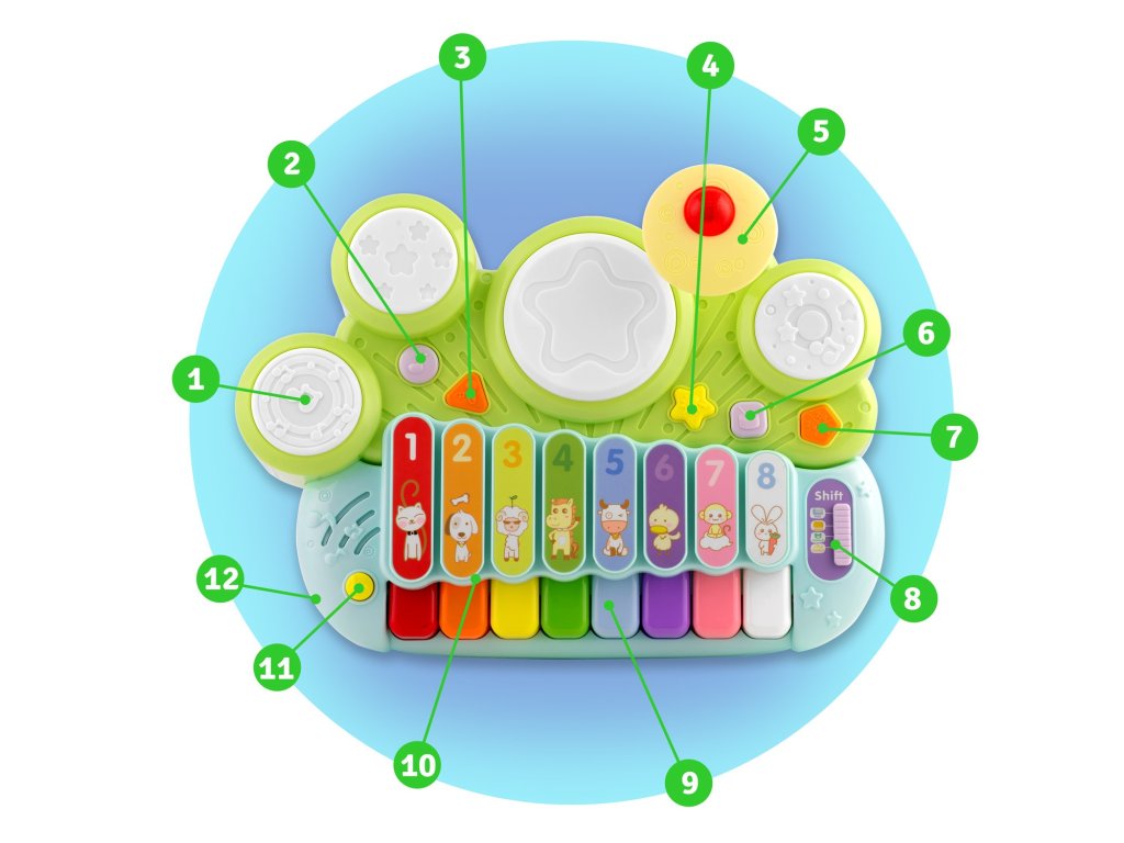 Produsul este ideal pentru învățarea numelor animalelor și culorilor . Panoul poate fi folosit ca tablă educativă și, după adăugarea picioarelor, se transformă rapid într-o masă de învățare.