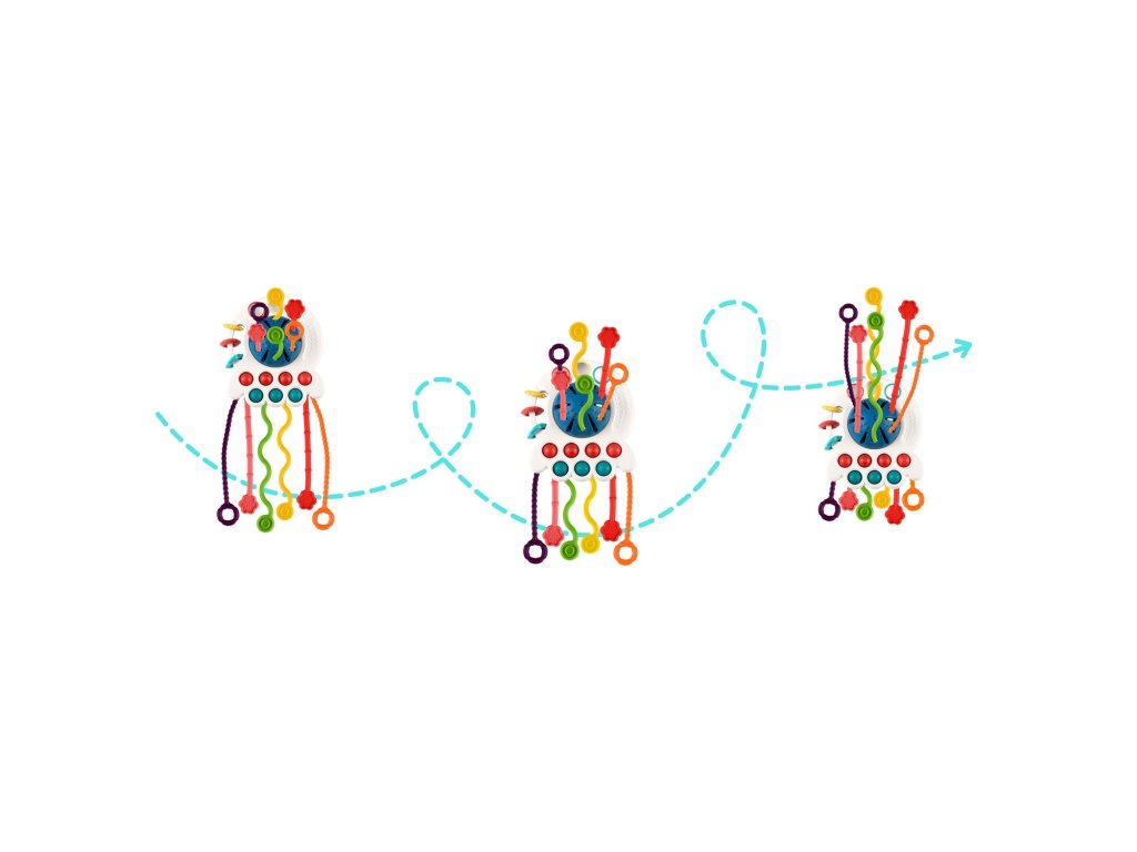 Susține dezvoltarea abilităților motorii fine în mâinile mici și oferă o multitudine de forme, texturi și culori care încurajează prinderea, ținerea și explorarea.