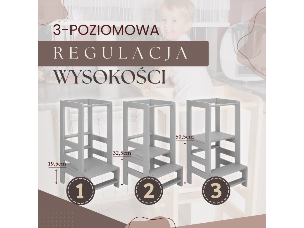 - Platformă reglabilă la trei înălțimi: 19,5 cm, 32,5 cm și 50,5 cm