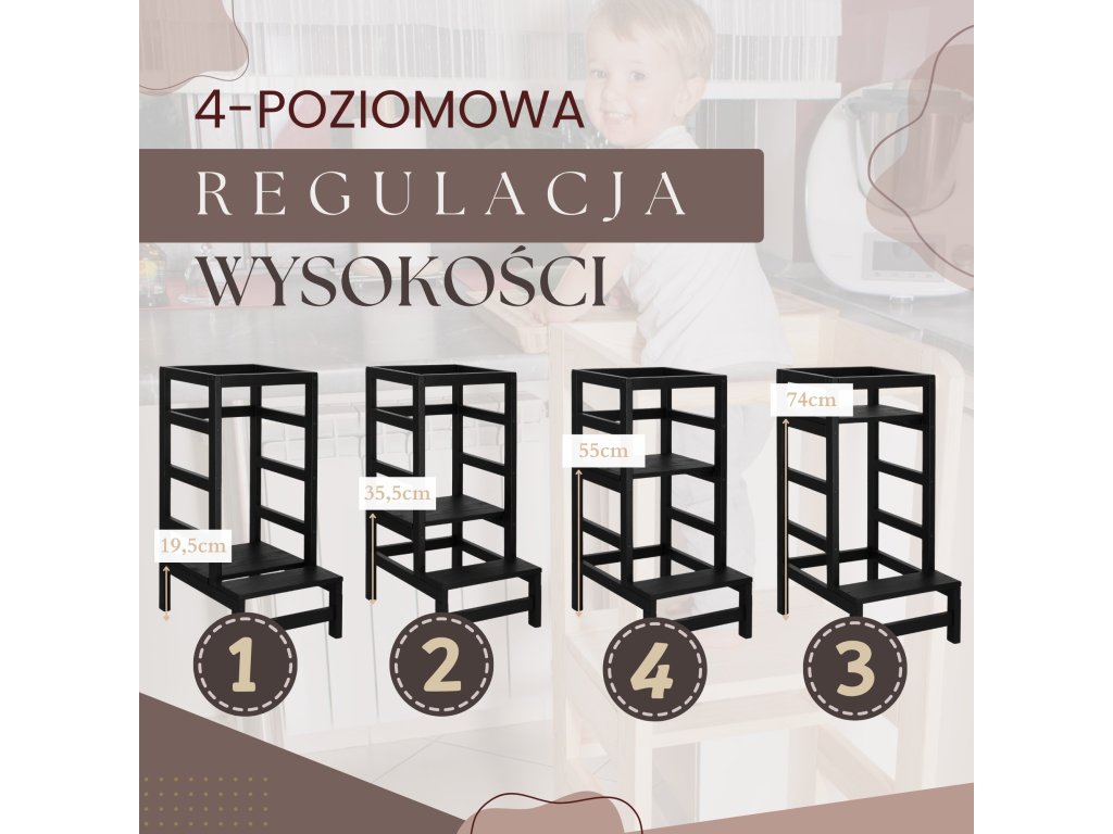 - Platformă reglabilă pe trei înălțimi: 19,5 cm /35,5 cm /55 cm /74 cm