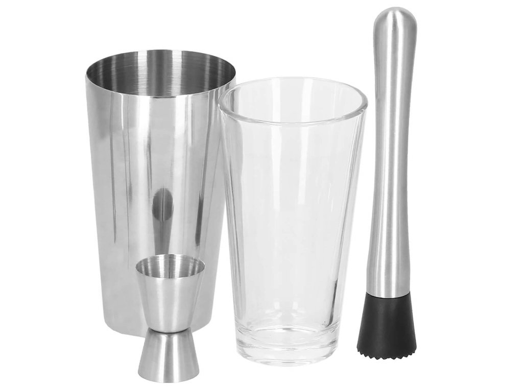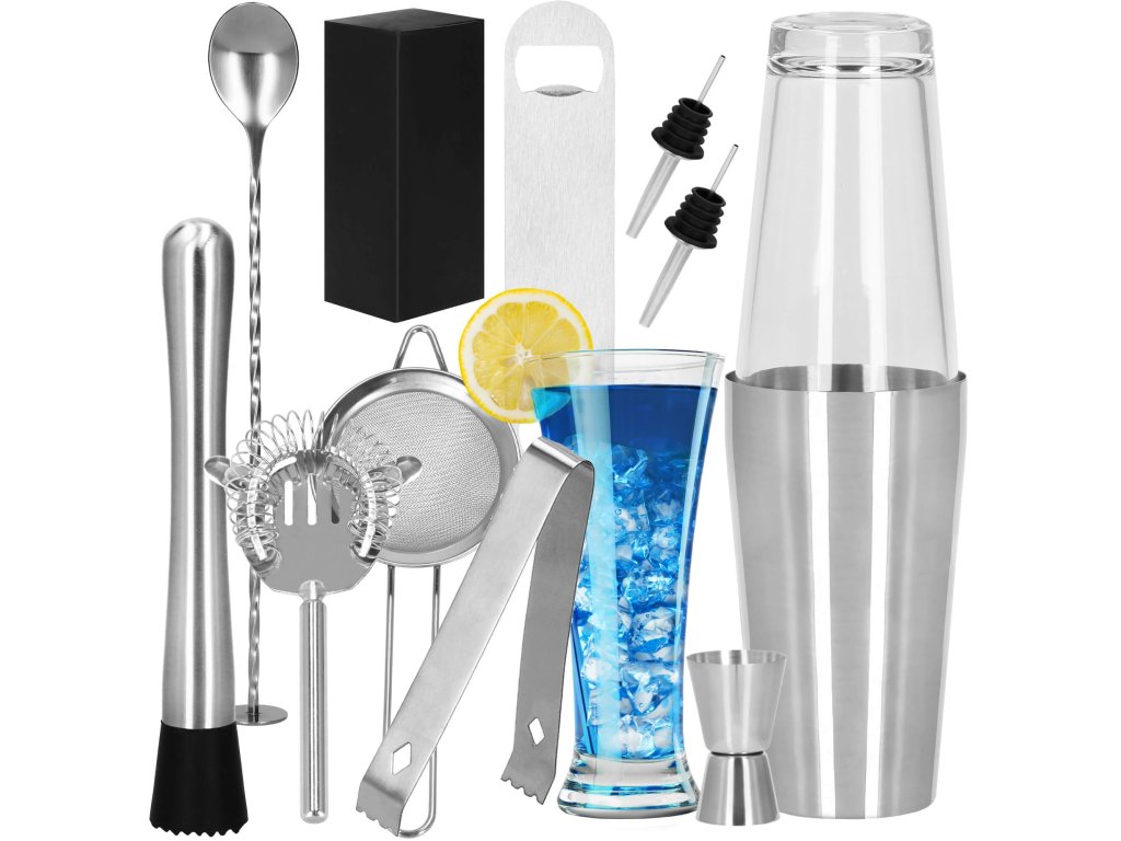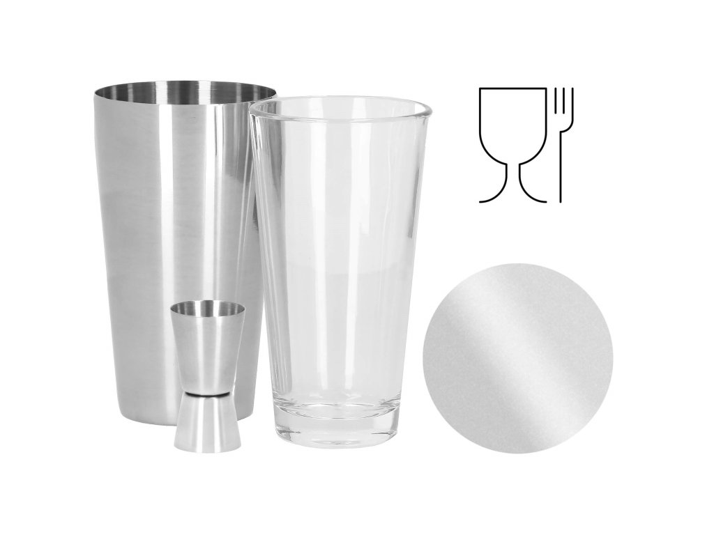 - 1 x shaker boston (pahar din sticlă și pahar din oțel inoxidabil) - înălțime: 28 cm