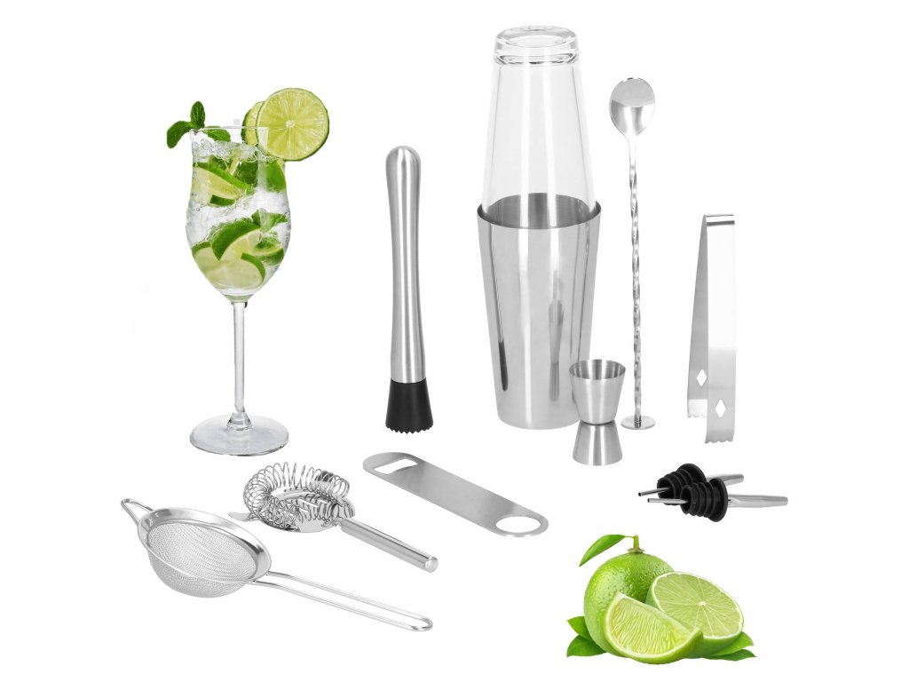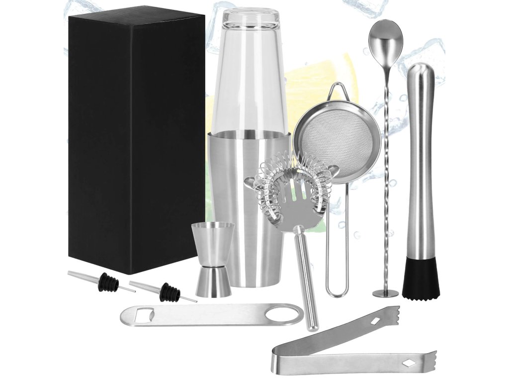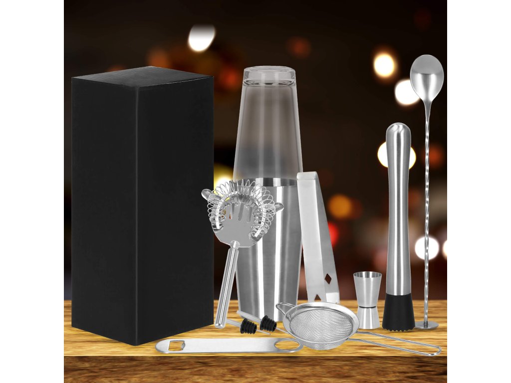 KI0009 SET BARMAN PENTRU BĂUTURI SHAKER, 11 ELEMENTE.