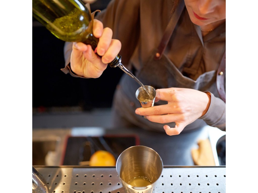 - 2 x măsură de barman - măsura mai mare înălțime: 8,5 cm, diametrul bazei: 4 cm și măsura mai mică: înălțime 6,5 cm, diametrul bazei: 3,5 cm