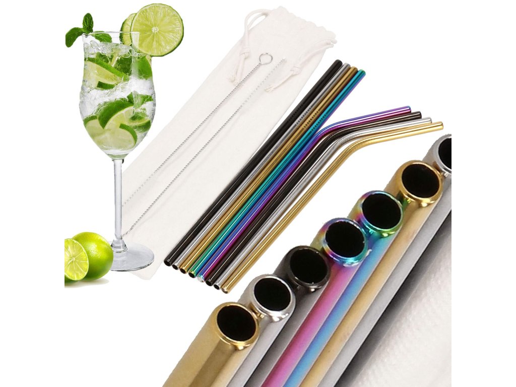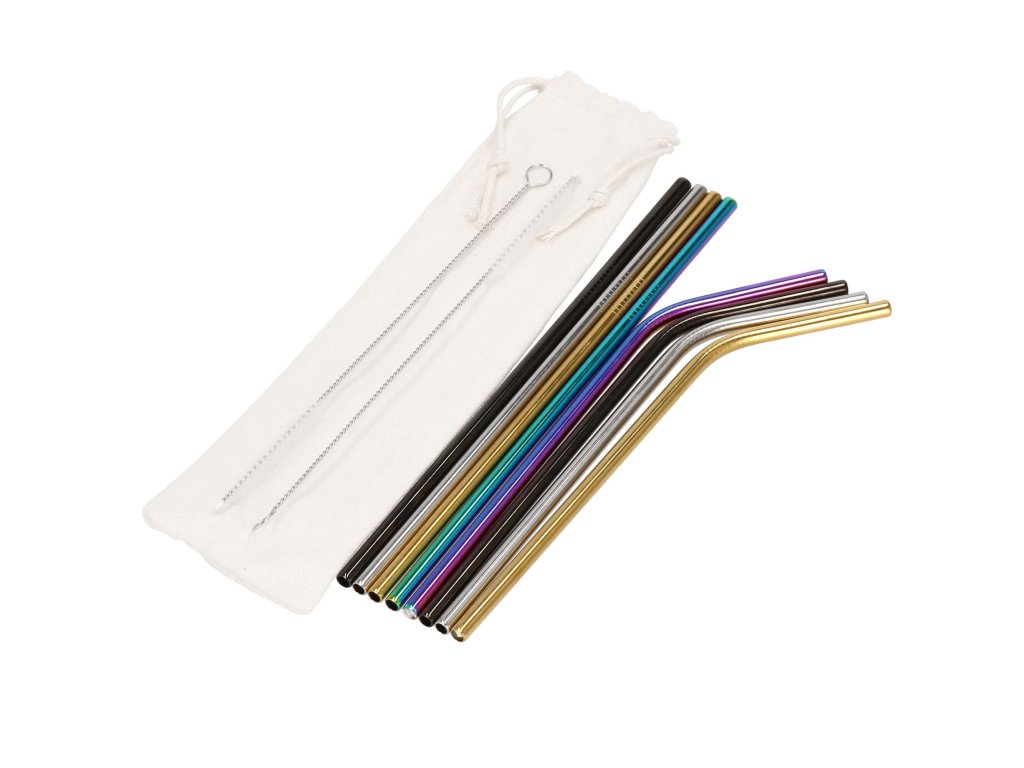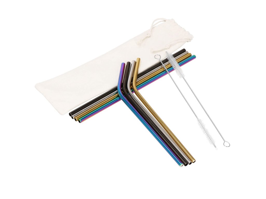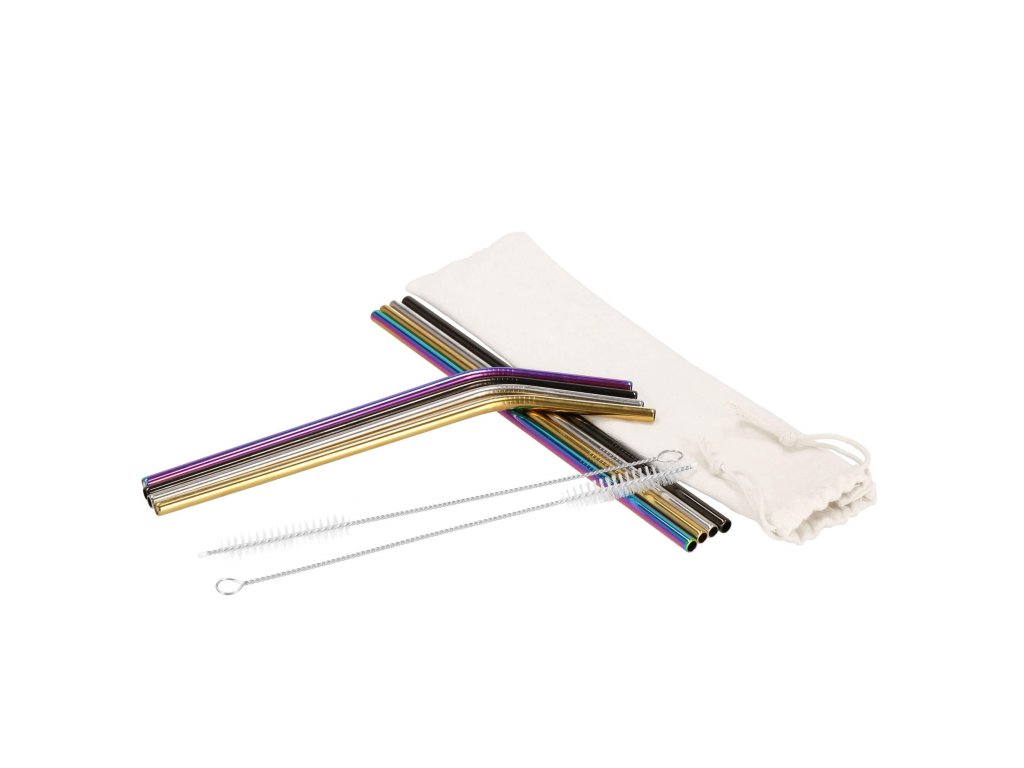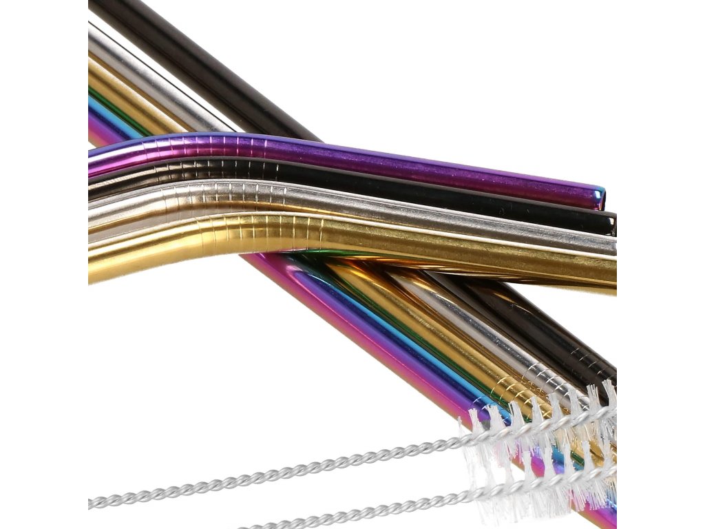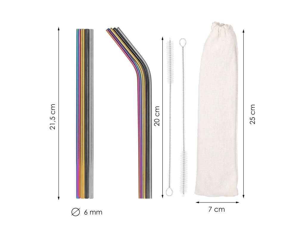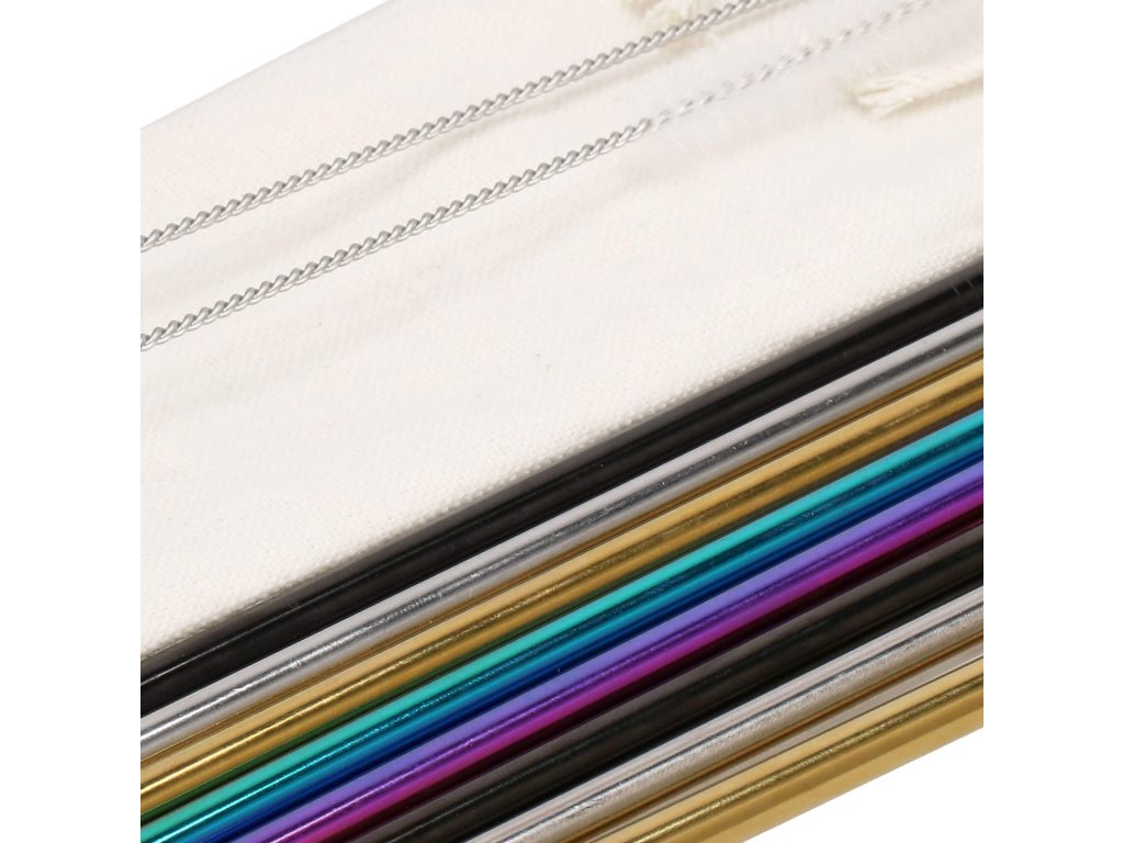 Setde paie colorate pentru băuturi, cu perii de curățare și husă din pânză.