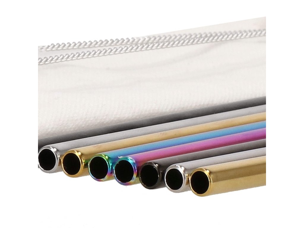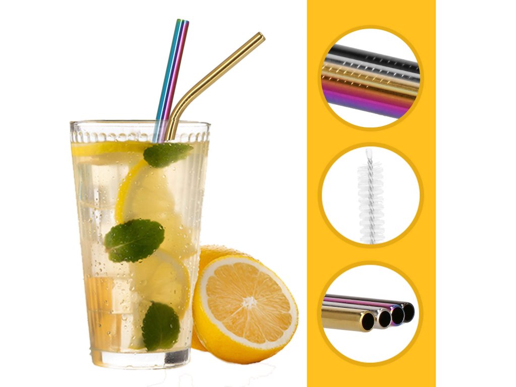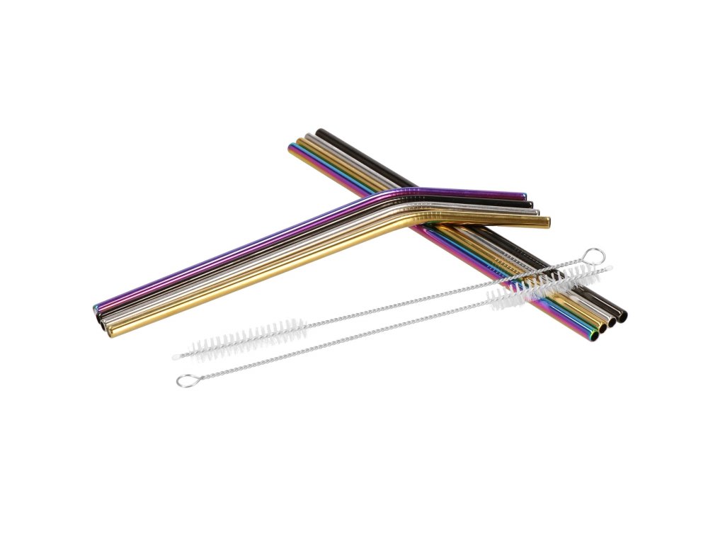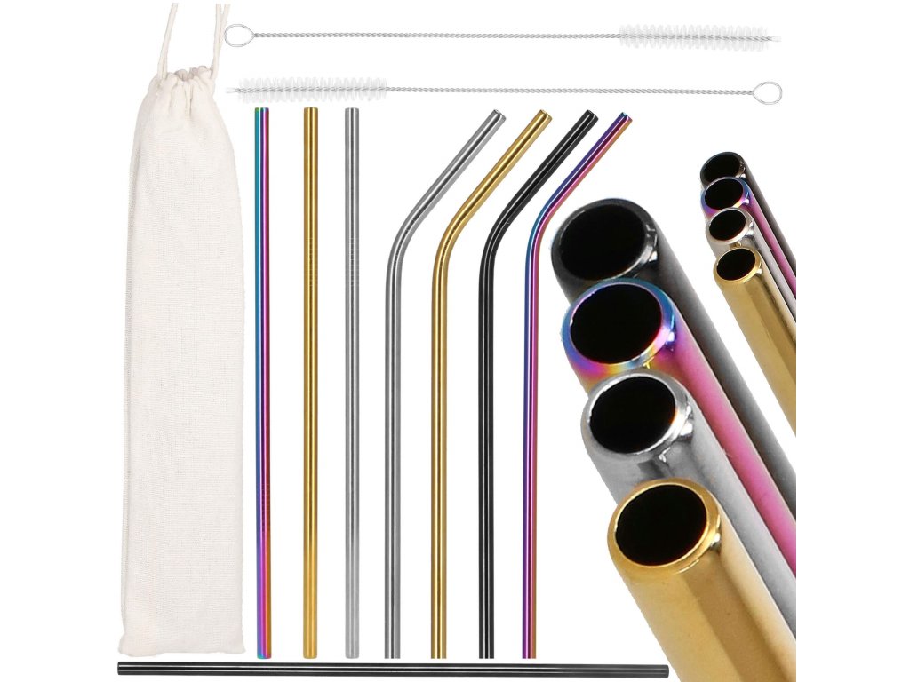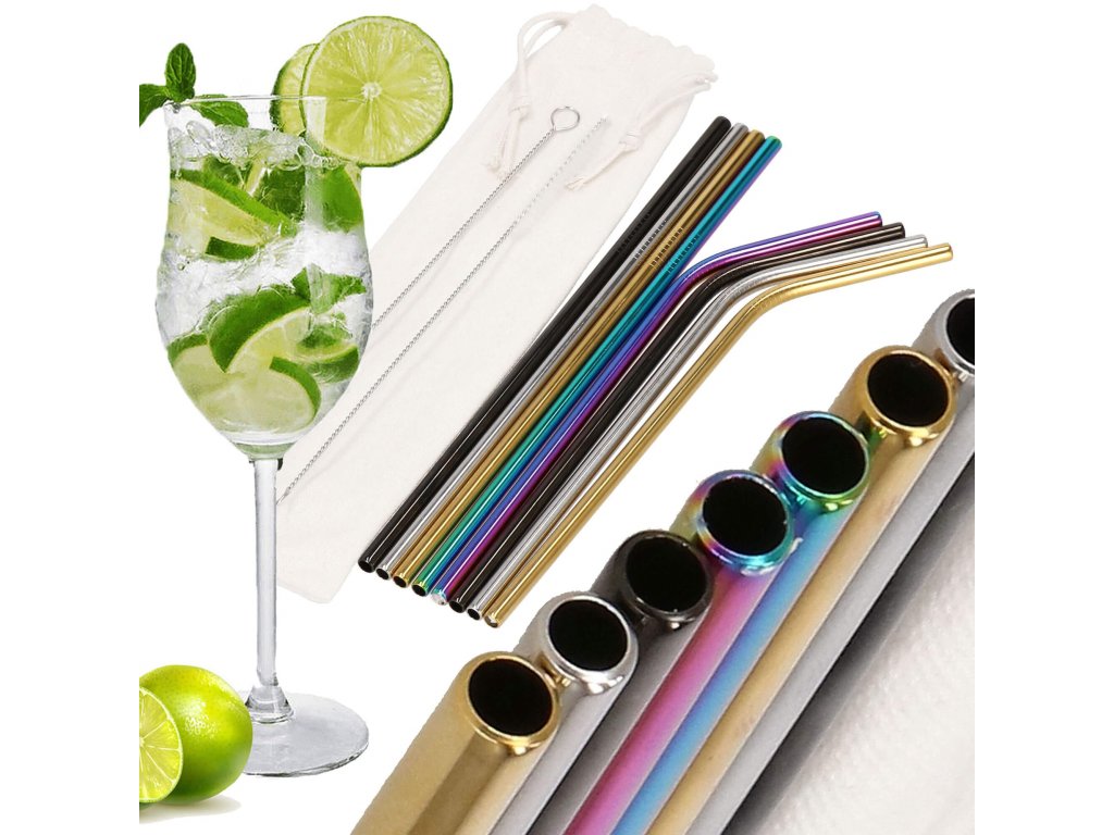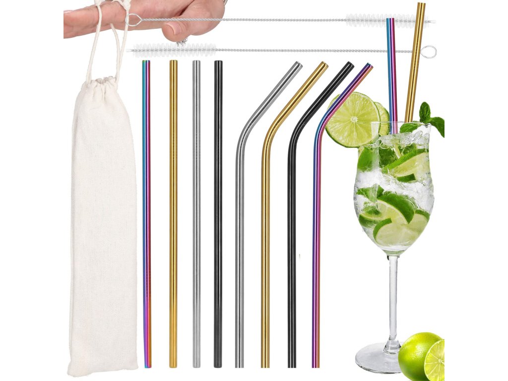 Setde paie colorate pentru băuturi, cu perii de curățare și husă din pânză.