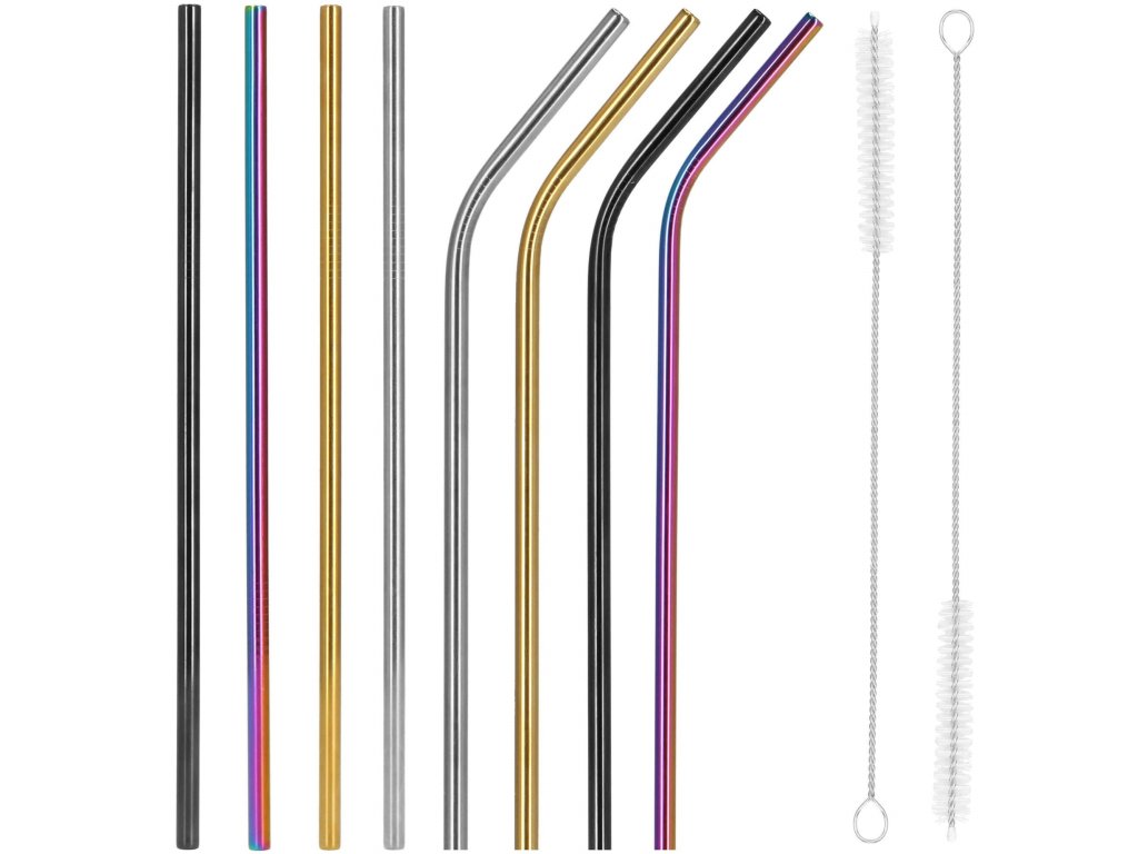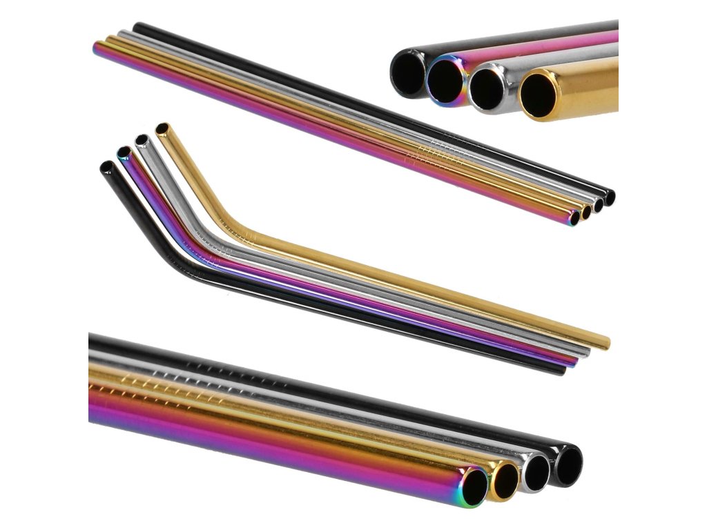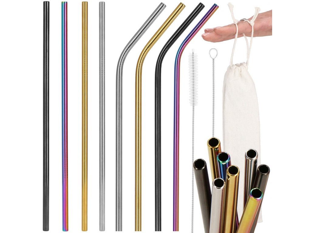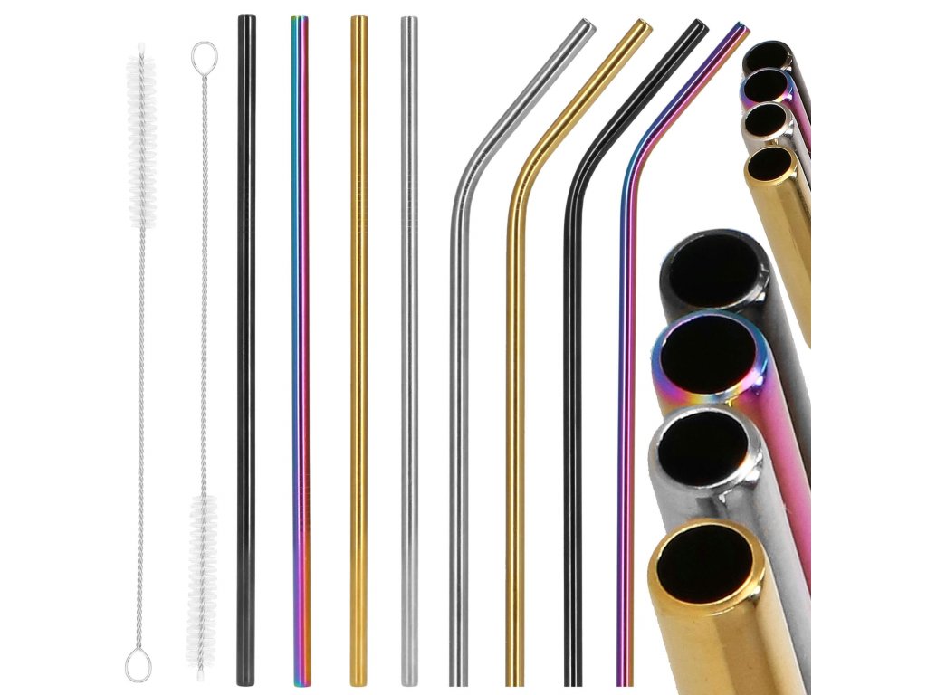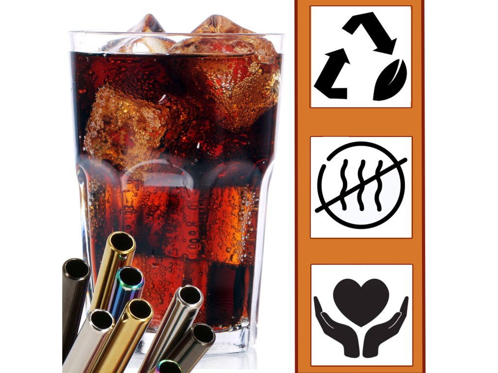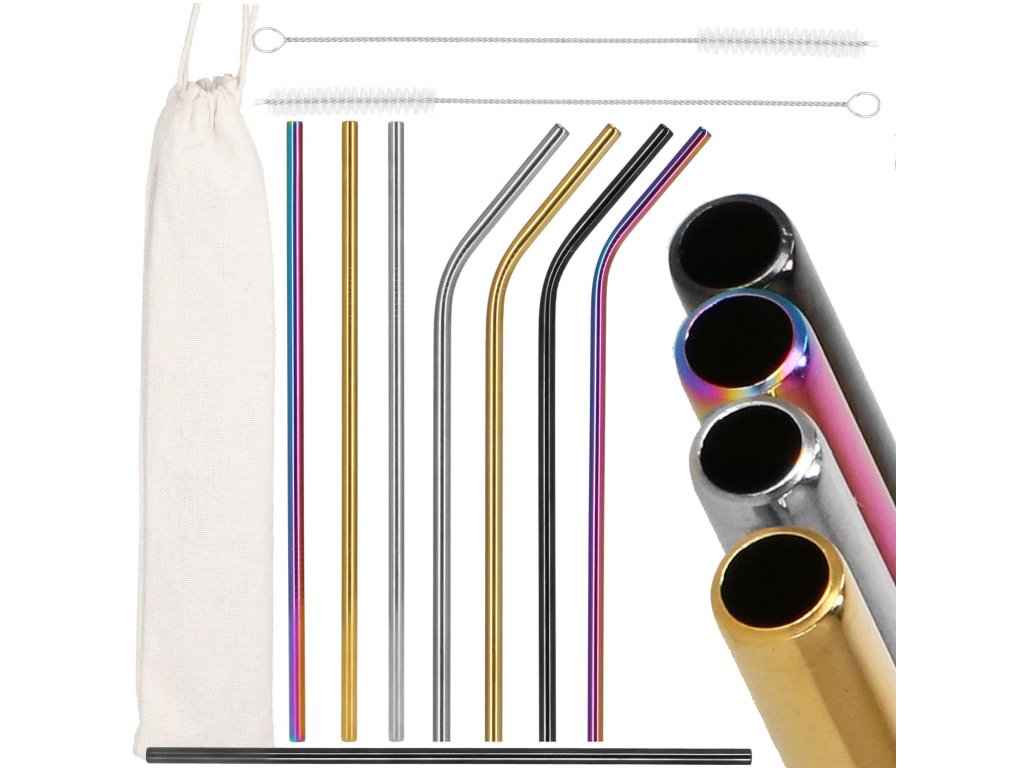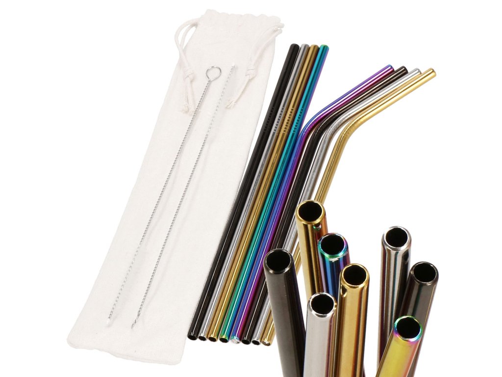 Setde paie colorate pentru băuturi, cu perii de curățare și husă din pânză.