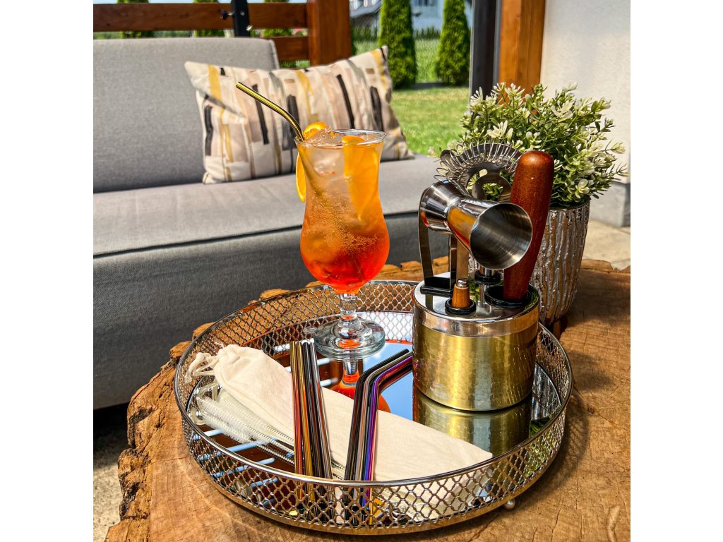- reutilizabilestriații estetice pe paie, care împiedică alunecarea acestoraperii prevăzute cu un inel pentru agățare și un vârf protejat pentru a nu zgâria interiorul pauzeihusă ușoară din pânză cu șnur, perfect integrată în trendurile eco