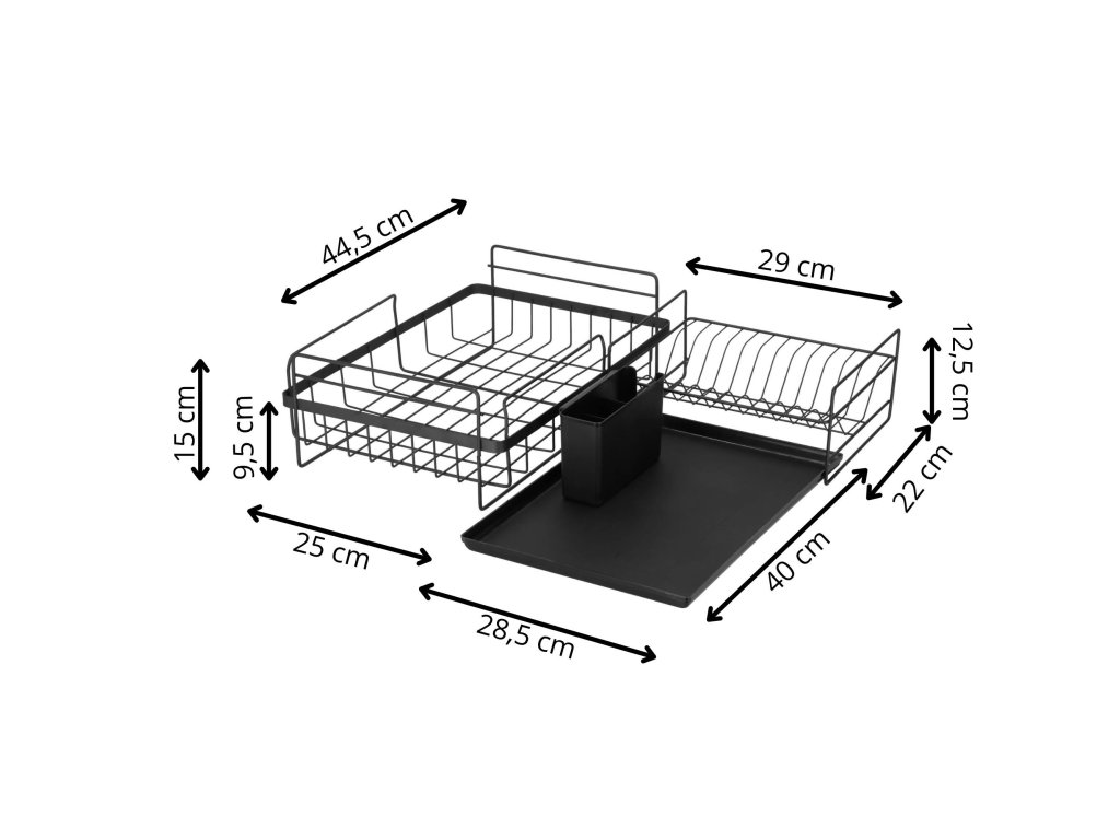 - Scurgător mai mare: 44,5 x 25 x 15 cm (înălțime până la marginea neagră: 9,5 cm)