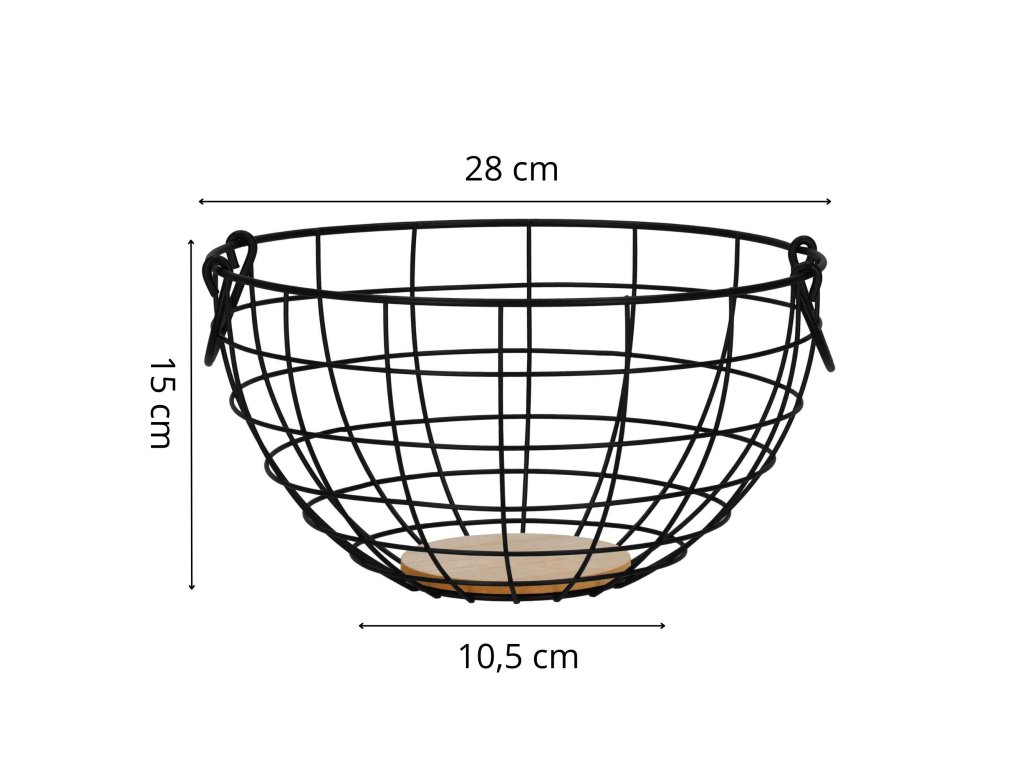 - Două mânere pe părțile laterale ale coșului: 10 x 4 cm (lungime x lățime); 4 mm (grosime)
