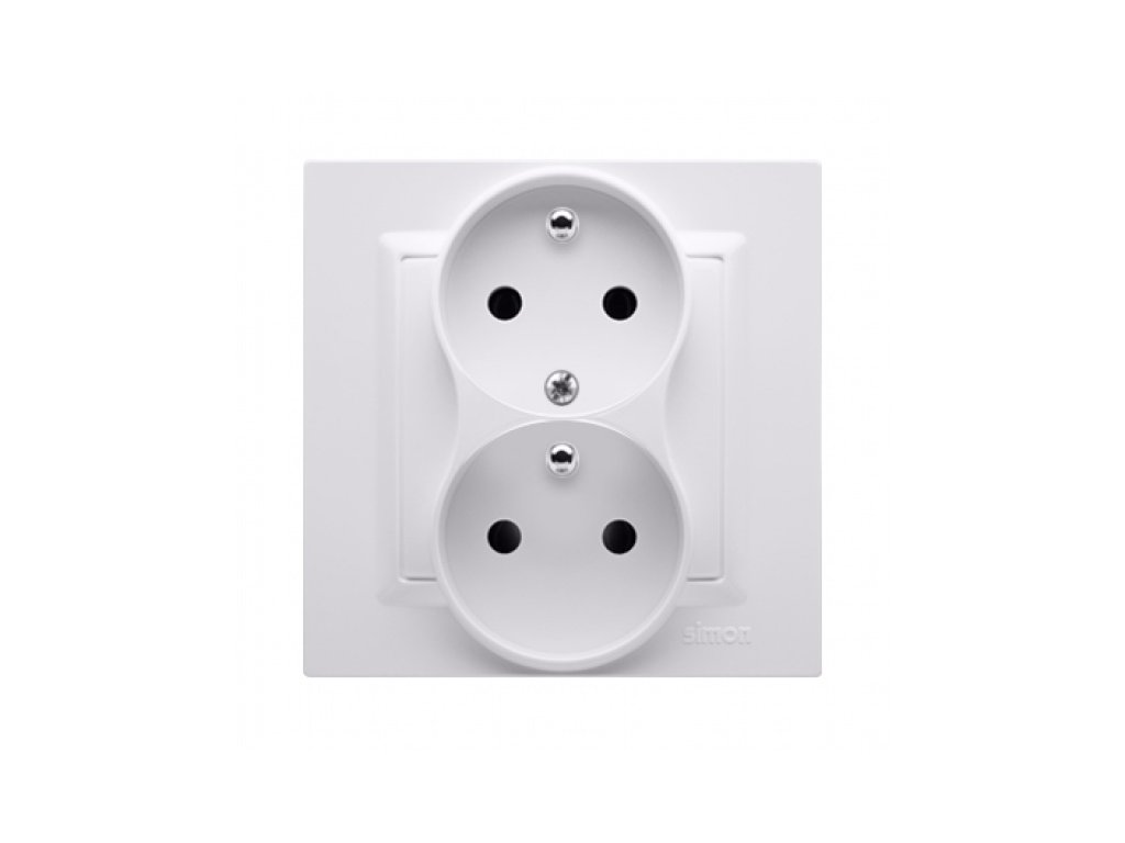 Priză dublă 250 V Simon 10 cu obturatoare albă